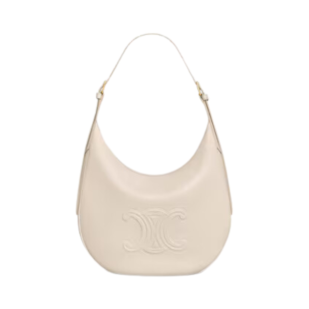 Borsa Celine Triomphe 30 cm in pelle liscia e strutturata beige pallido