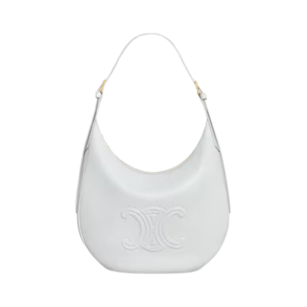 Mini borsa Celine Triomphe 23,5 cm in pelle liscia e strutturata bianca