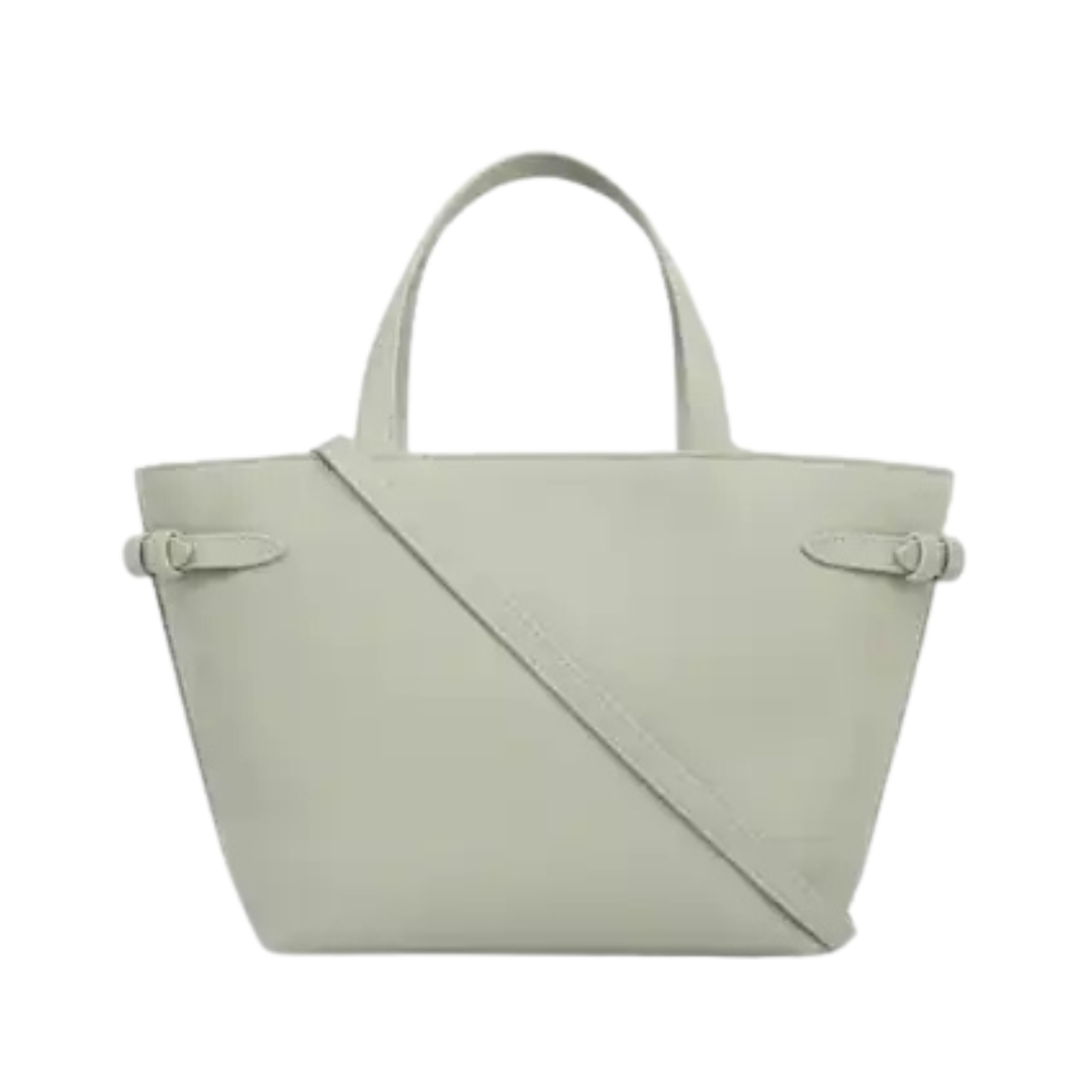 Dimensioni:● Larghezza: 20 cm● Altezza: 16 cm● Profondità: 7 cm Dettagli:● Materiale: Pelle di vitello strutturata● Colore: Verde chiaro● Chiusura: