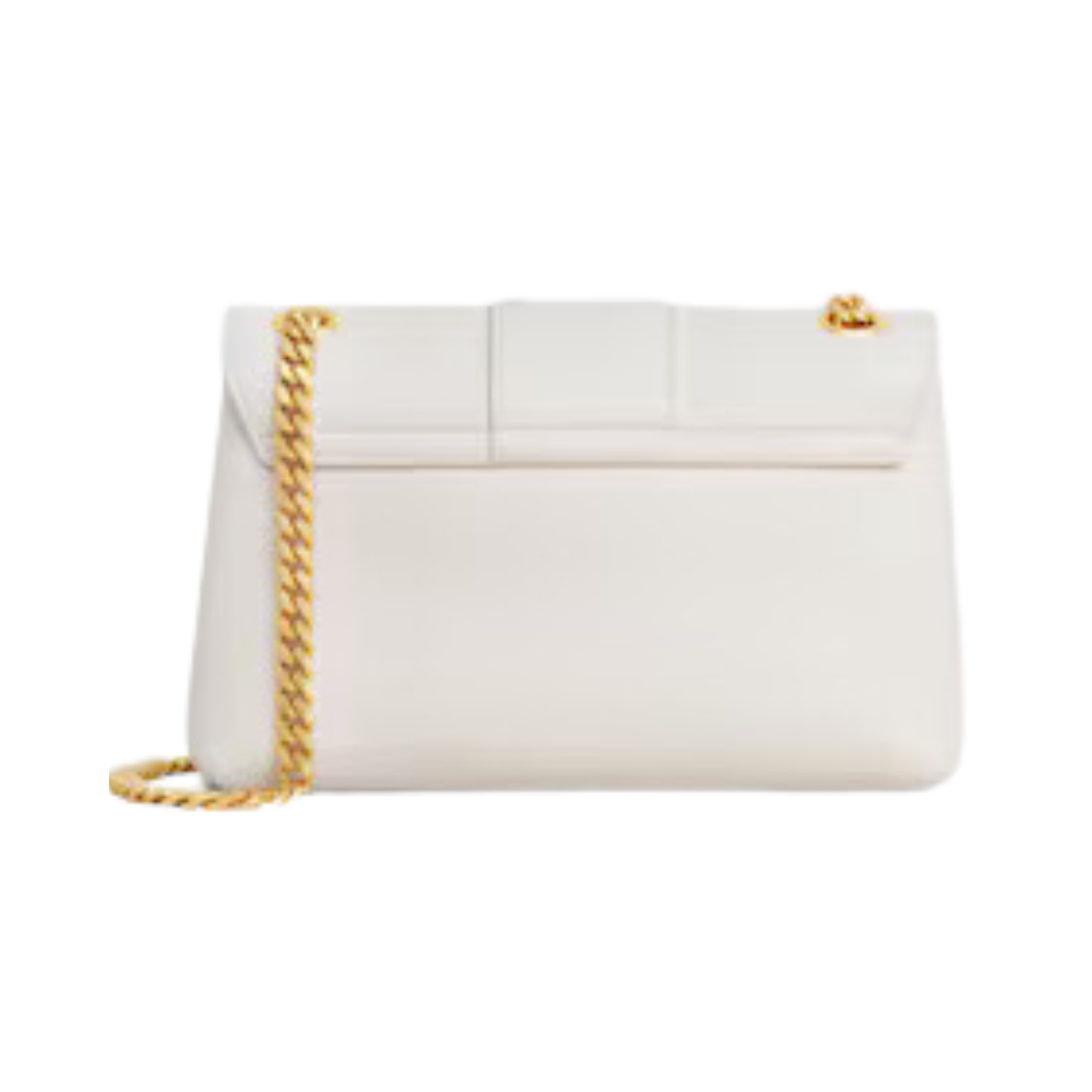 Dimensioni:● Larghezza: 23.5 cm● Altezza: 16 cm● Profondità: 7 cm Dettagli:● Materiale: Pelle di vitello liscia e strutturata● Colore: Bianco●