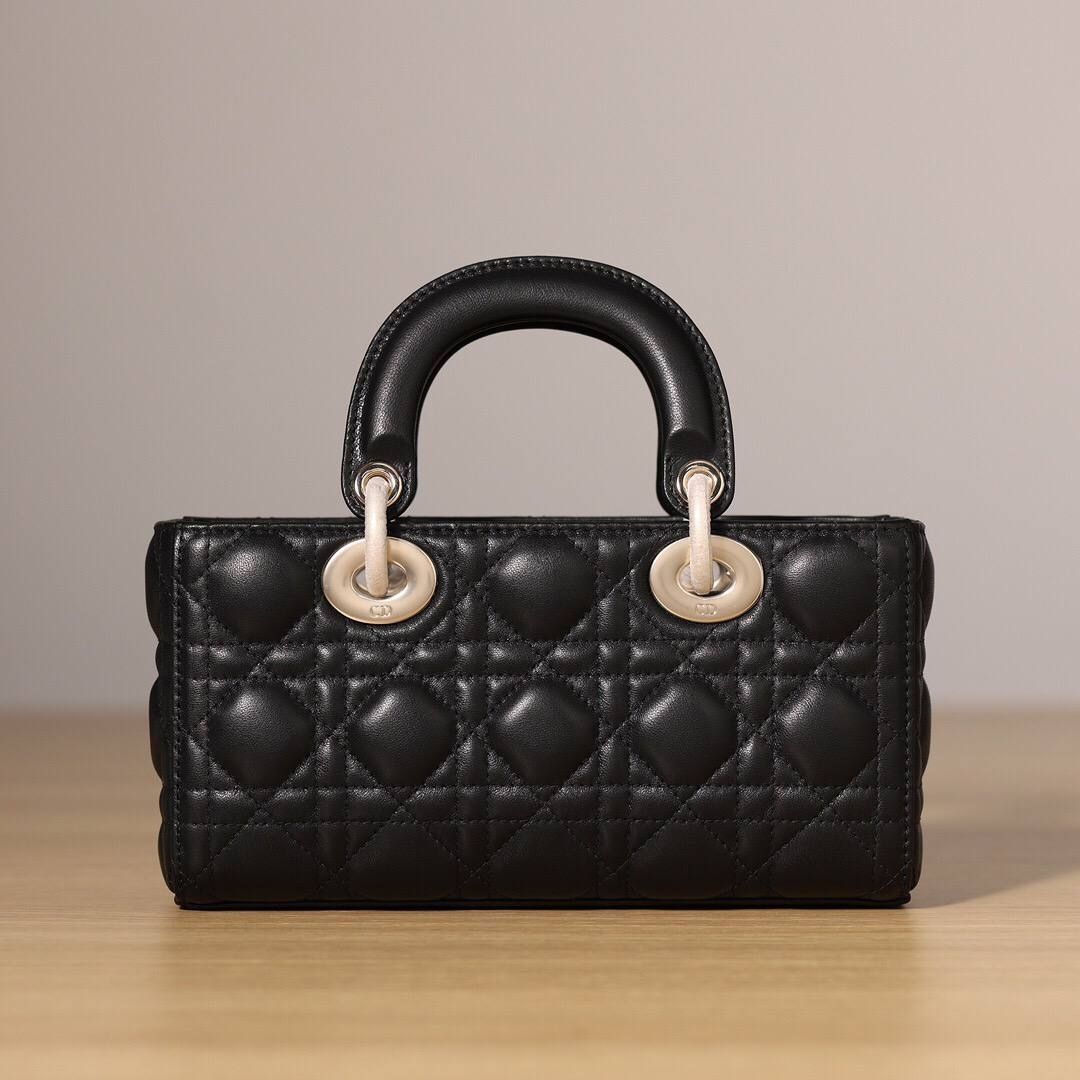 Borsa Dior Lady in pelle nera con dettagli argento 24 cm