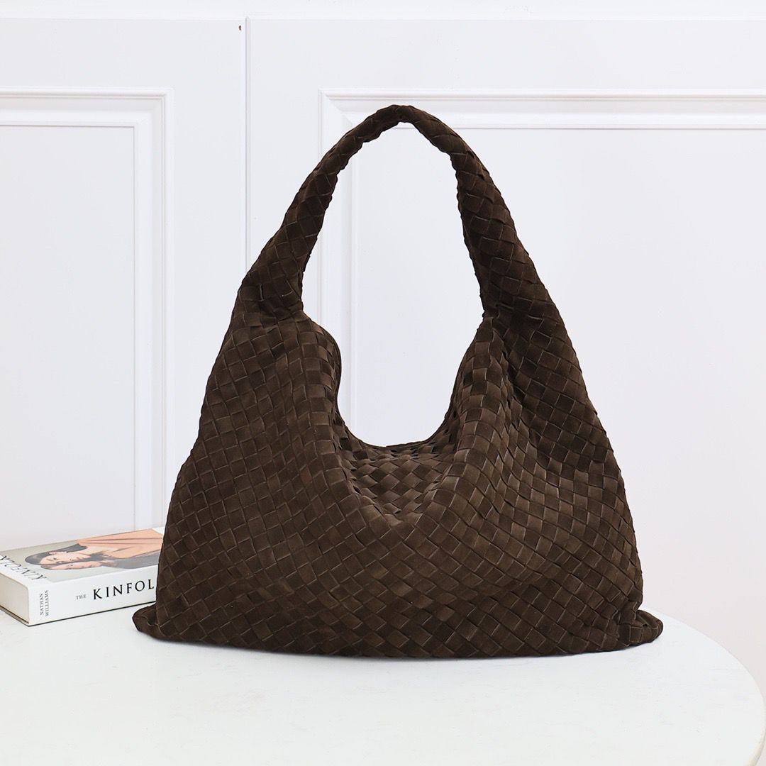 Dimensioni:● Larghezza: 55 cm● Altezza: 35 cm● Profondità: 20 cm Dettagli:● Materiale: Pelle intrecciata● Colore: Marrone cioccolato● Chiusura: Zip superiore●