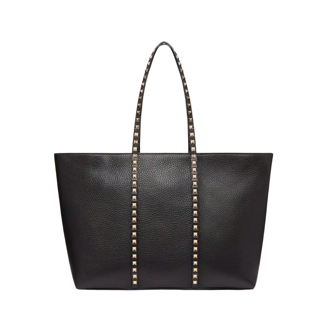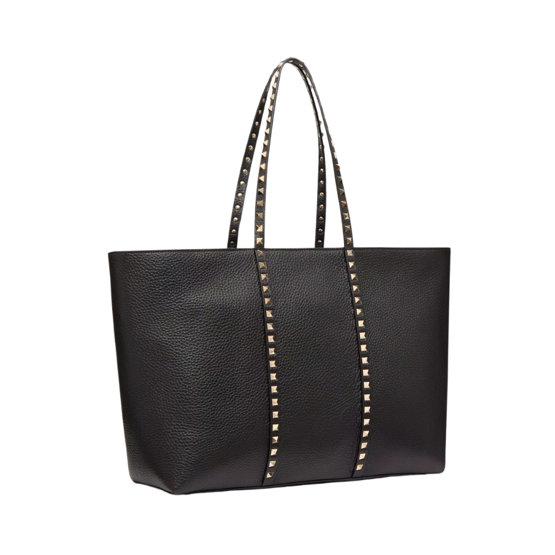 Borsa Valentino Rockstud in pelle martellata nera 37 cm