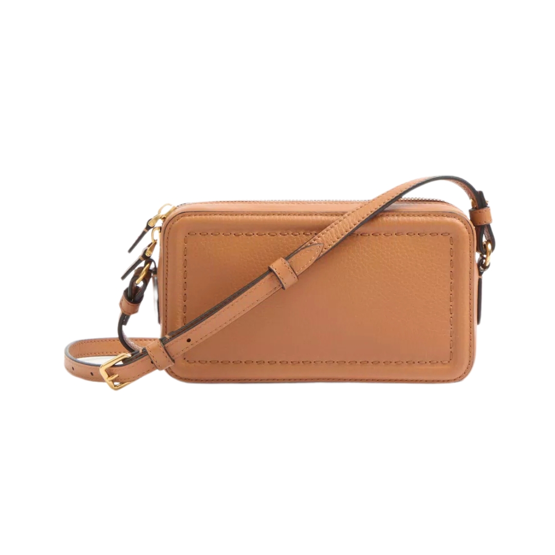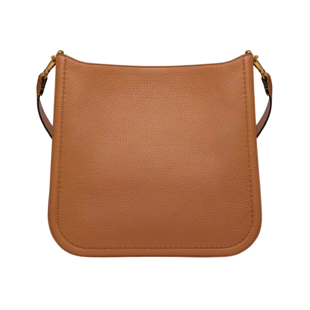 Dimensioni:● Larghezza: 23.5 cm● Altezza: 14 cm● Profondità: 6 cm Dettagli:● Materiale: Pelle di vitello liscia● Colore: Mandorla● Chiusura: Patta