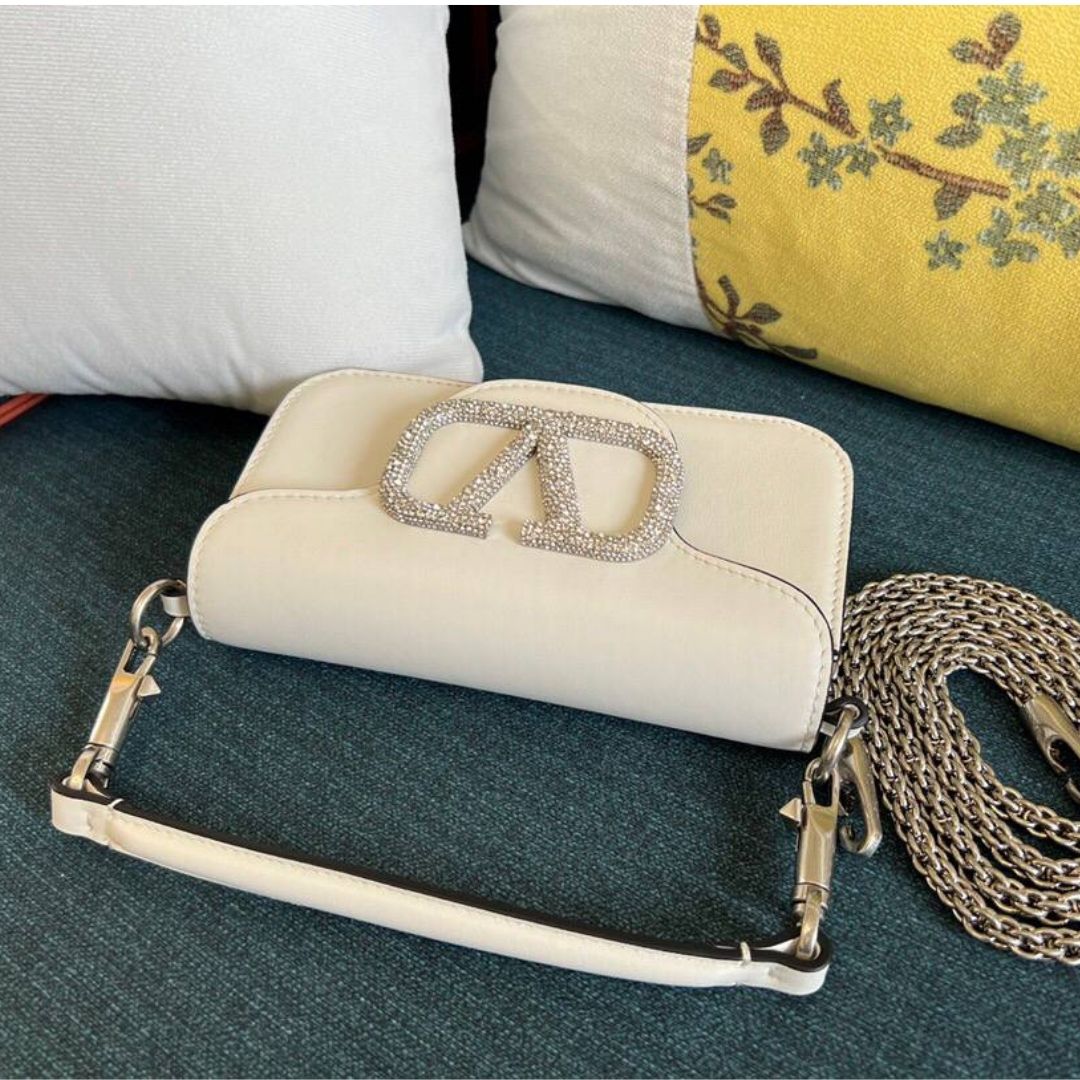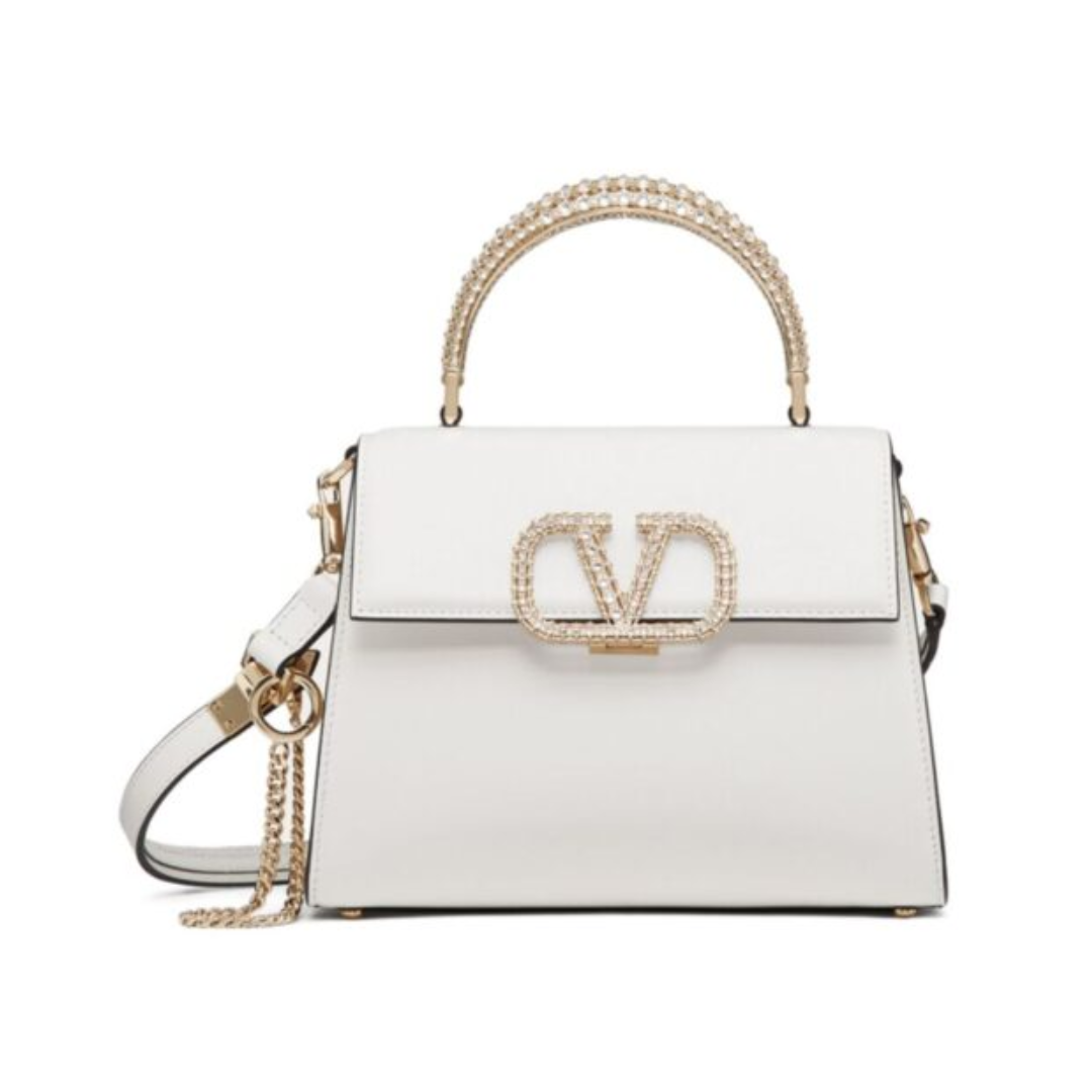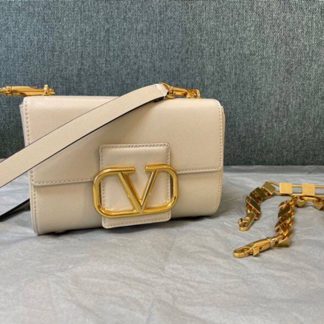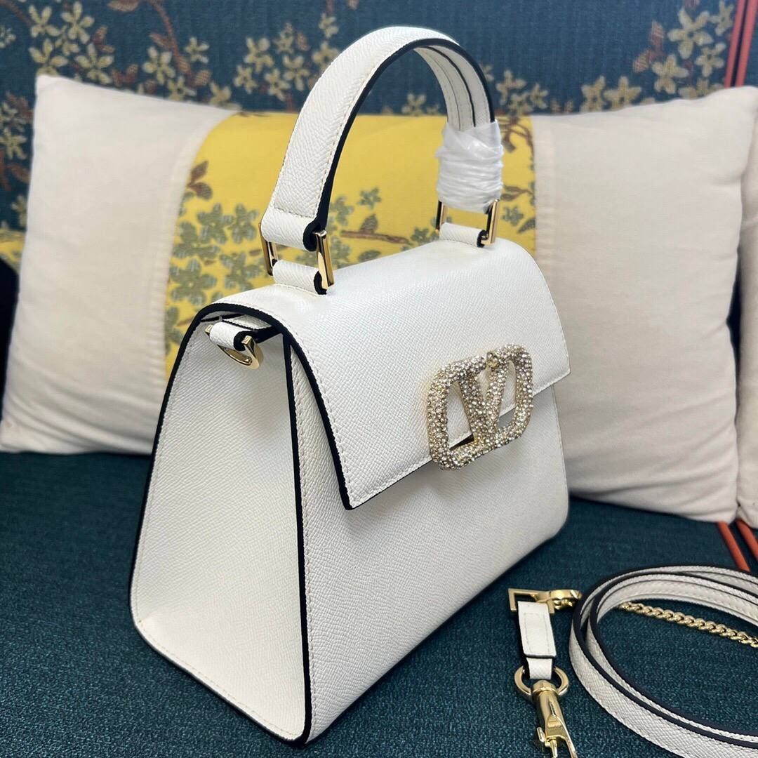 Borsa Valentino Vsling in pelle color crema 22 cm