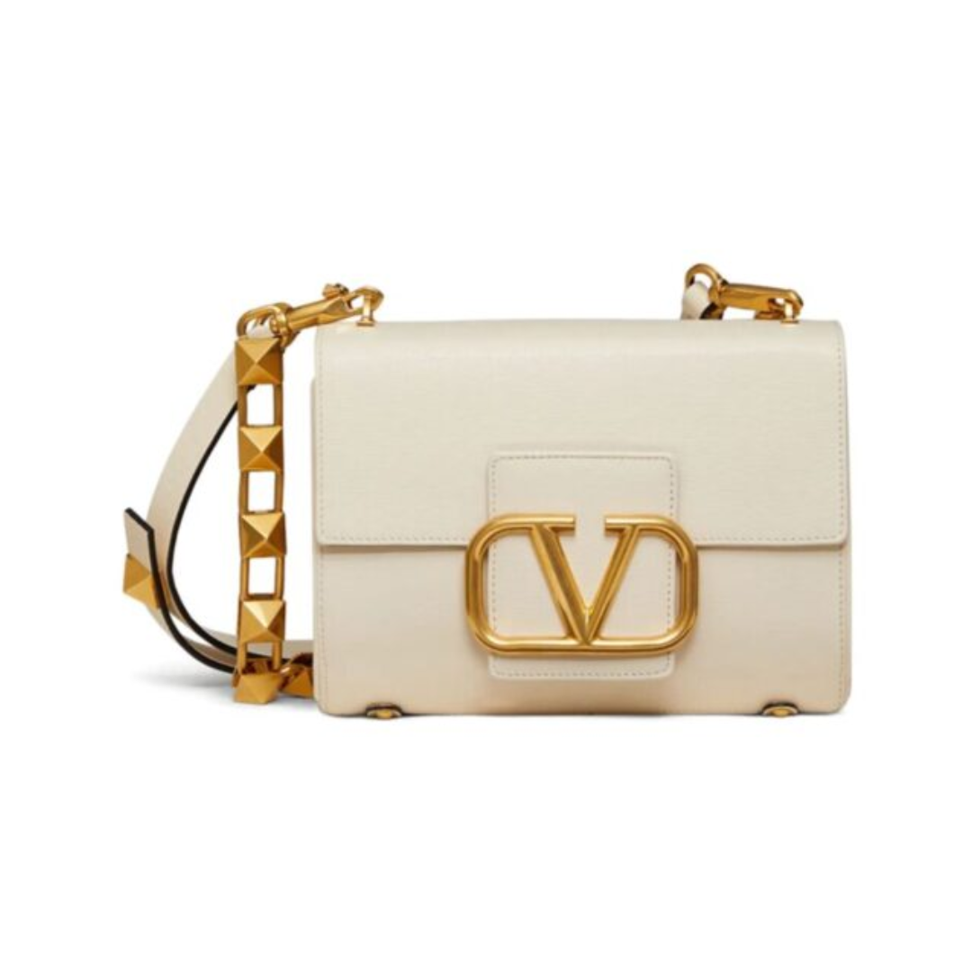 Borsa Valentino Stud Sign in pelle crema 20 cm