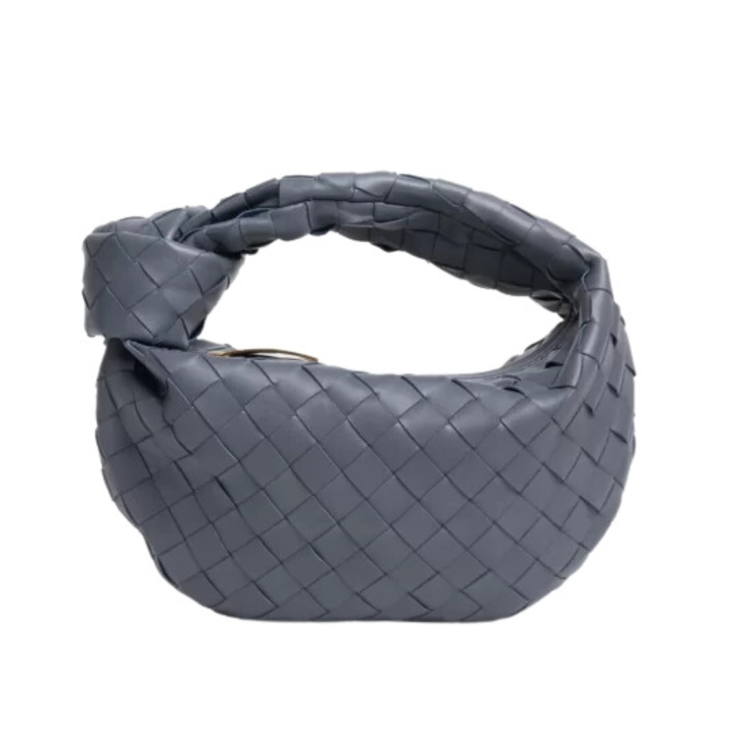 Dimensioni:● Larghezza: 28,4 cm● Altezza: 15 cm● Profondità: 8 cm Dettagli:● Materiale: Pelle intrecciata● Colore: Grigio● Chiusura: Zip superiore● Logo: