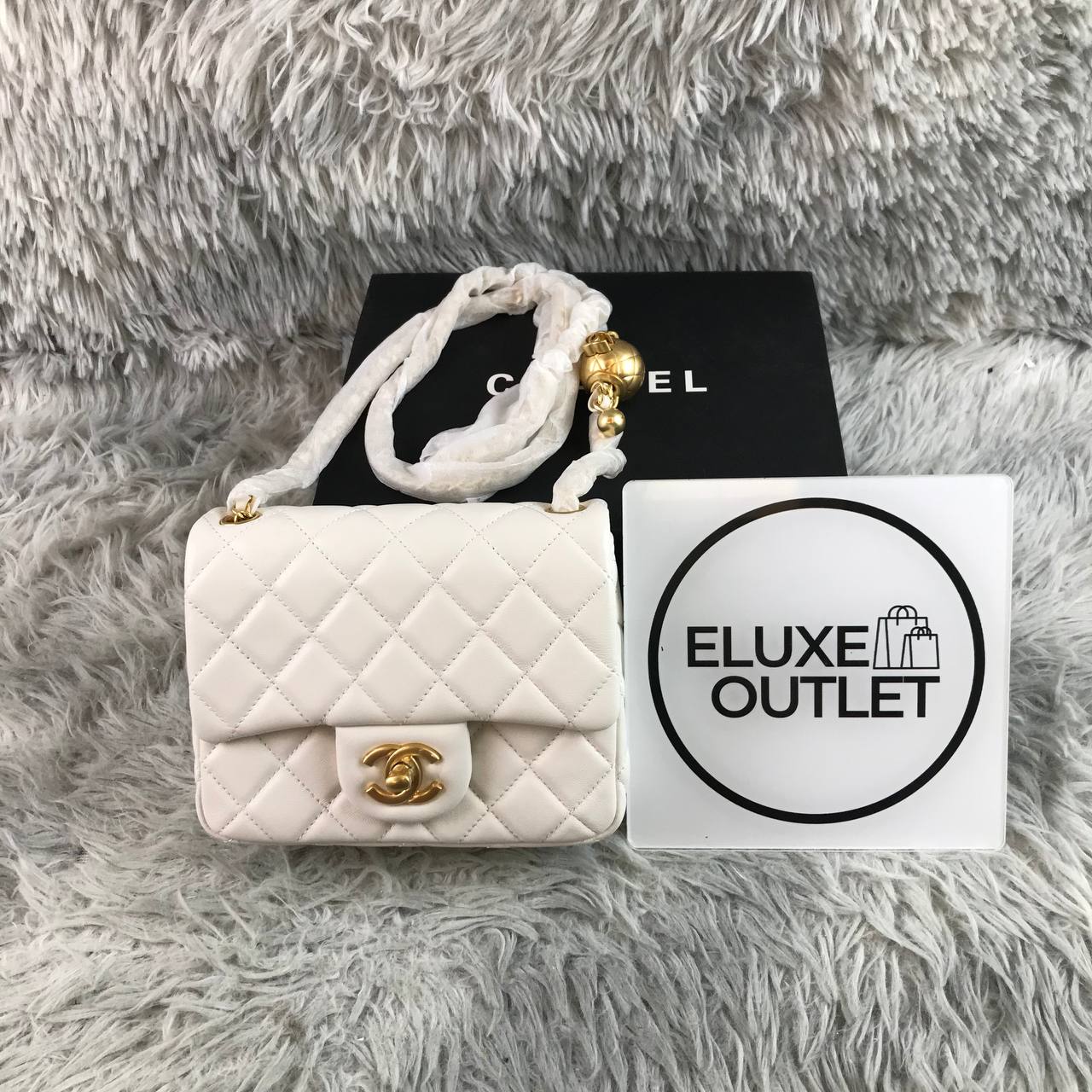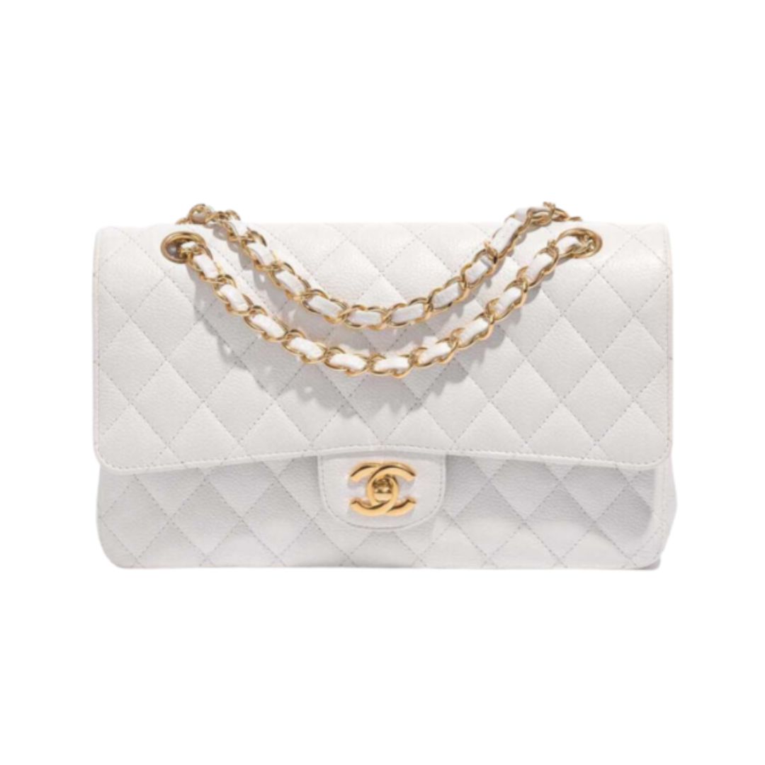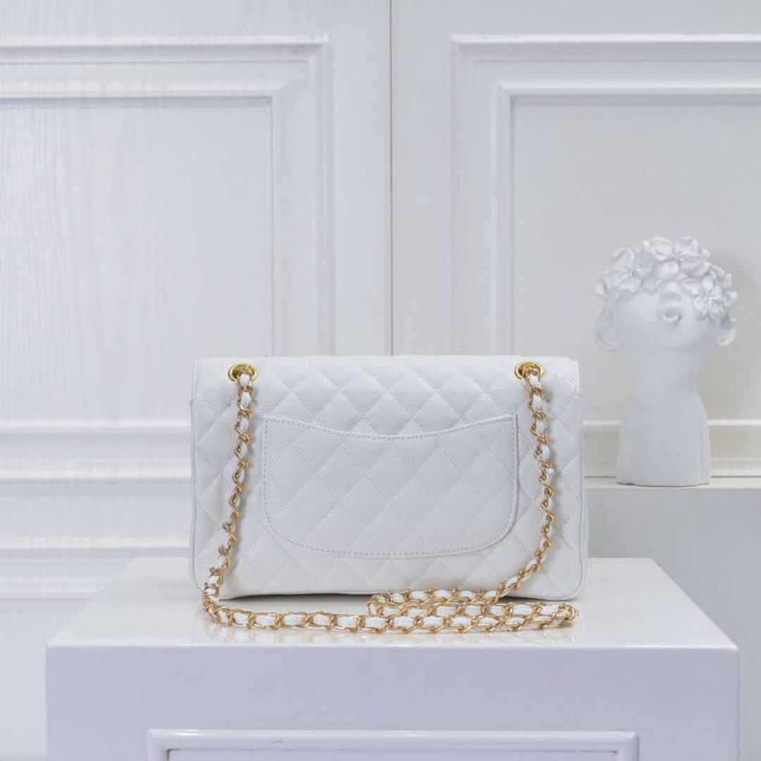 Dimensioni:● Larghezza: 26 cm● Altezza: 20 cm● Profondità: 12 cm Dettagli:● Materiale: Pelle trapuntata● Colore: Bianco● Chiusura: Zip superiore● Logo: