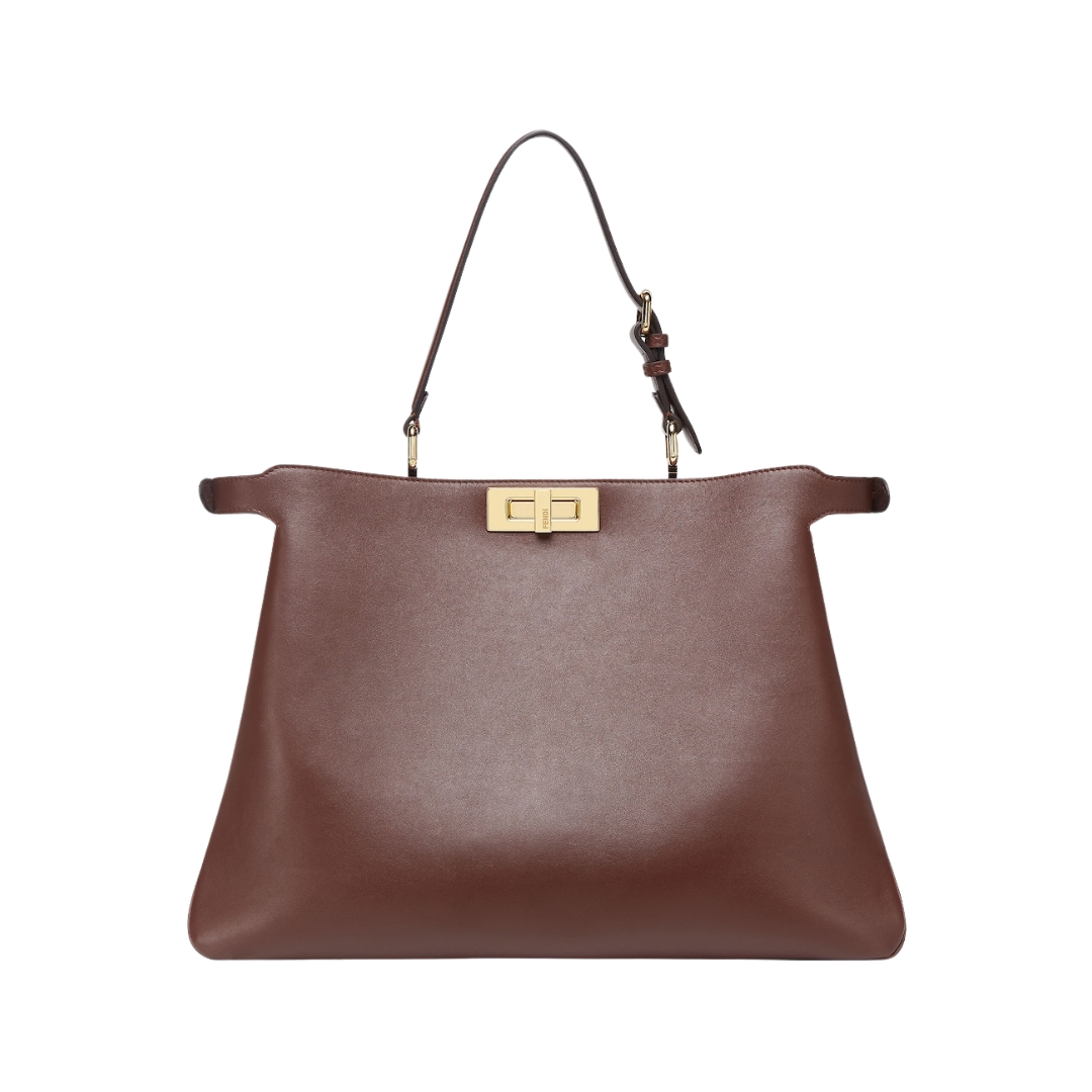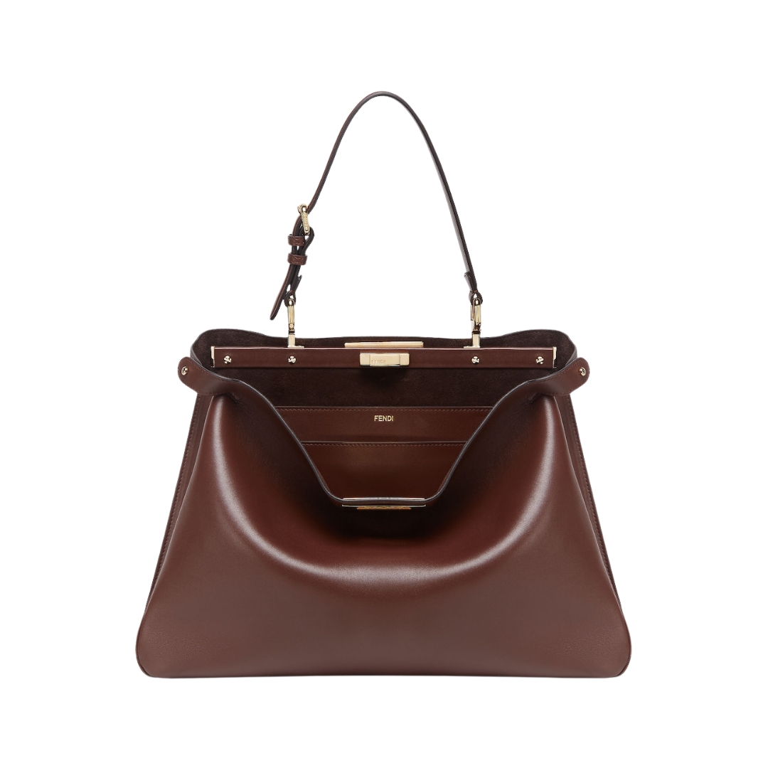 Borsa Fendi Peekaboo ISeeU Medium in pelle marrone scuro 28 cm