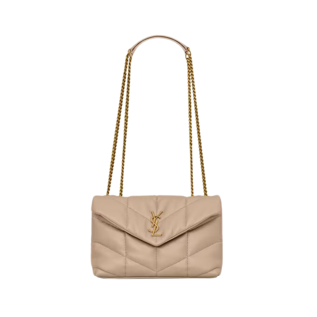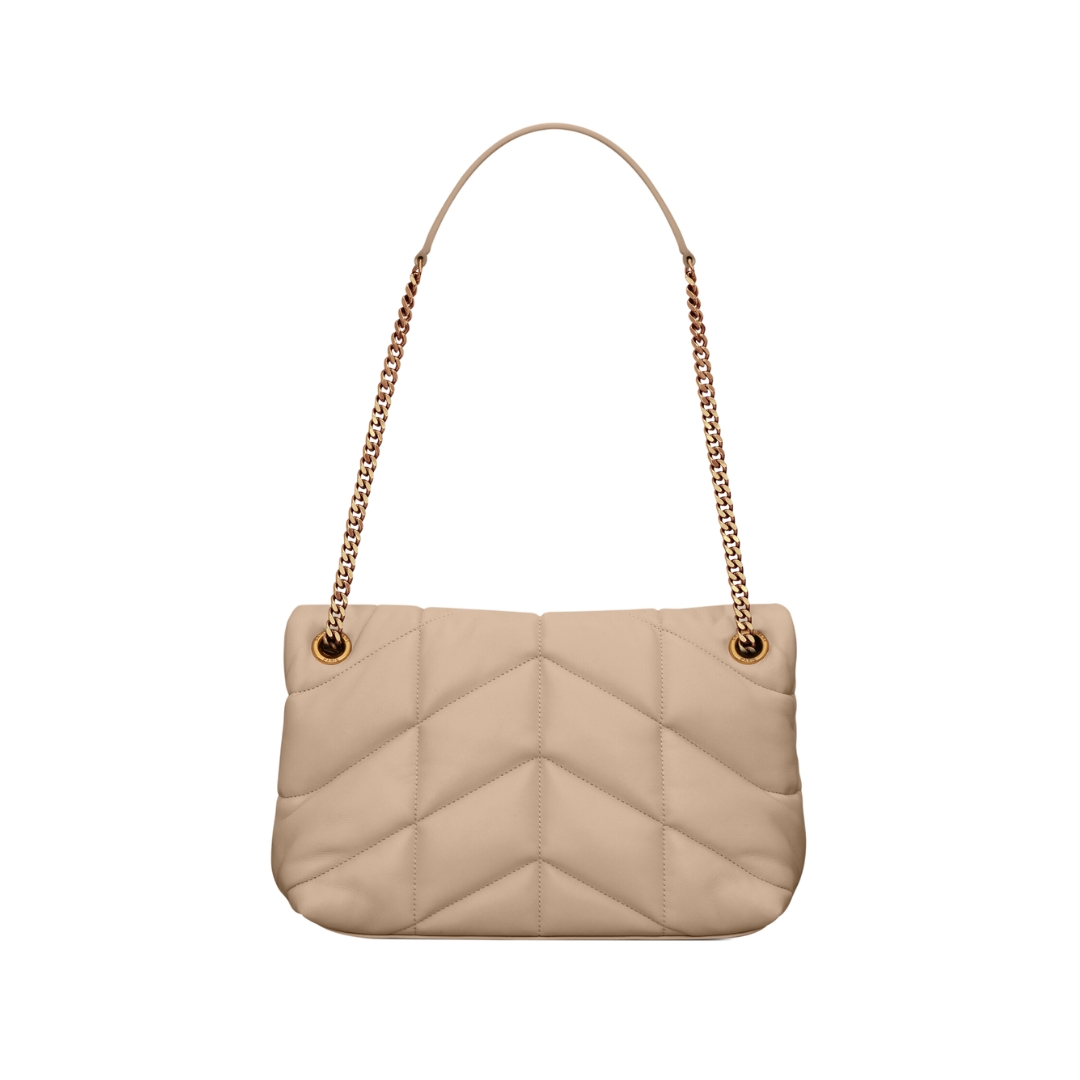 Borsa Saint Laurent Loulou Puffer Small in nappa beige 29 cm