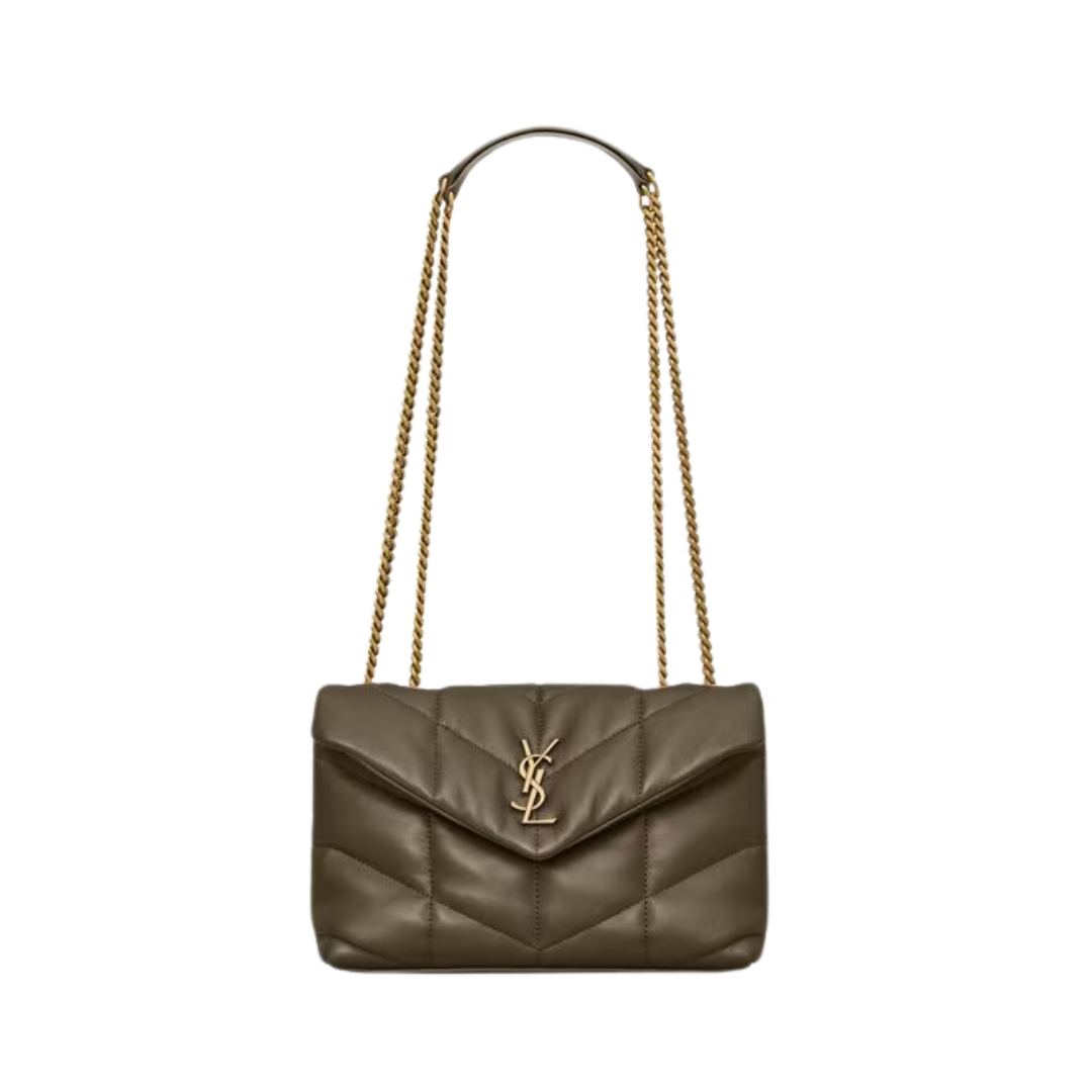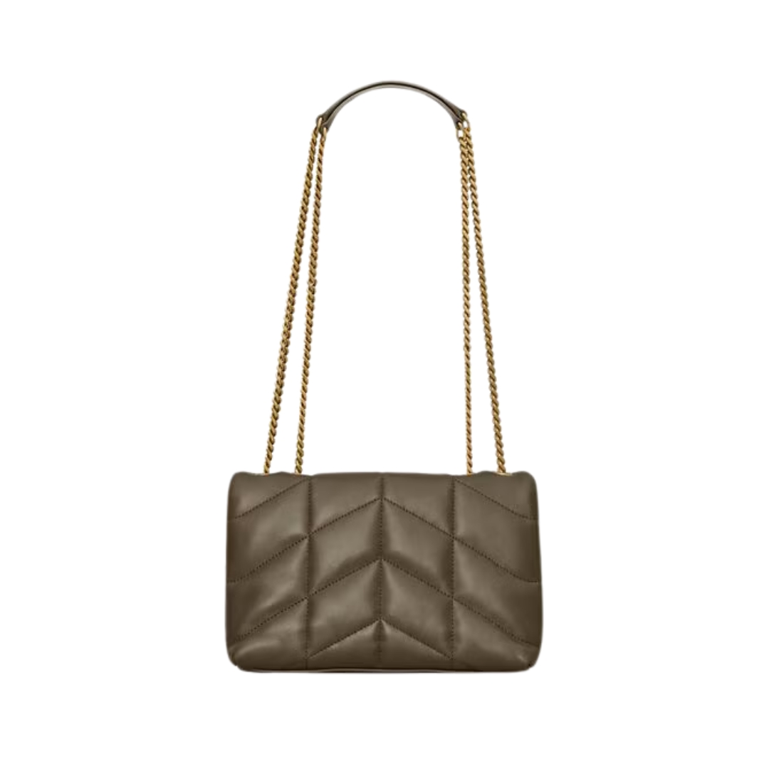 Borsa Saint Laurent Loulou Puffer Toy in nappa verde oliva 23 cm