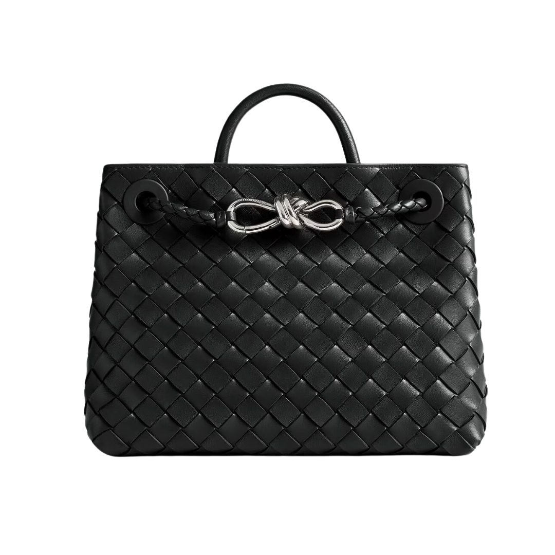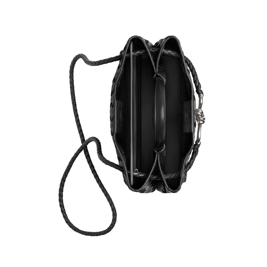 Dimensioni:● Larghezza: 25 cm● Altezza: 19 cm● Profondità: 10 cm Dettagli:● Materiale: Pelle Intrecciato liscia● Colore: Nero● Chiusura: Zip superiore