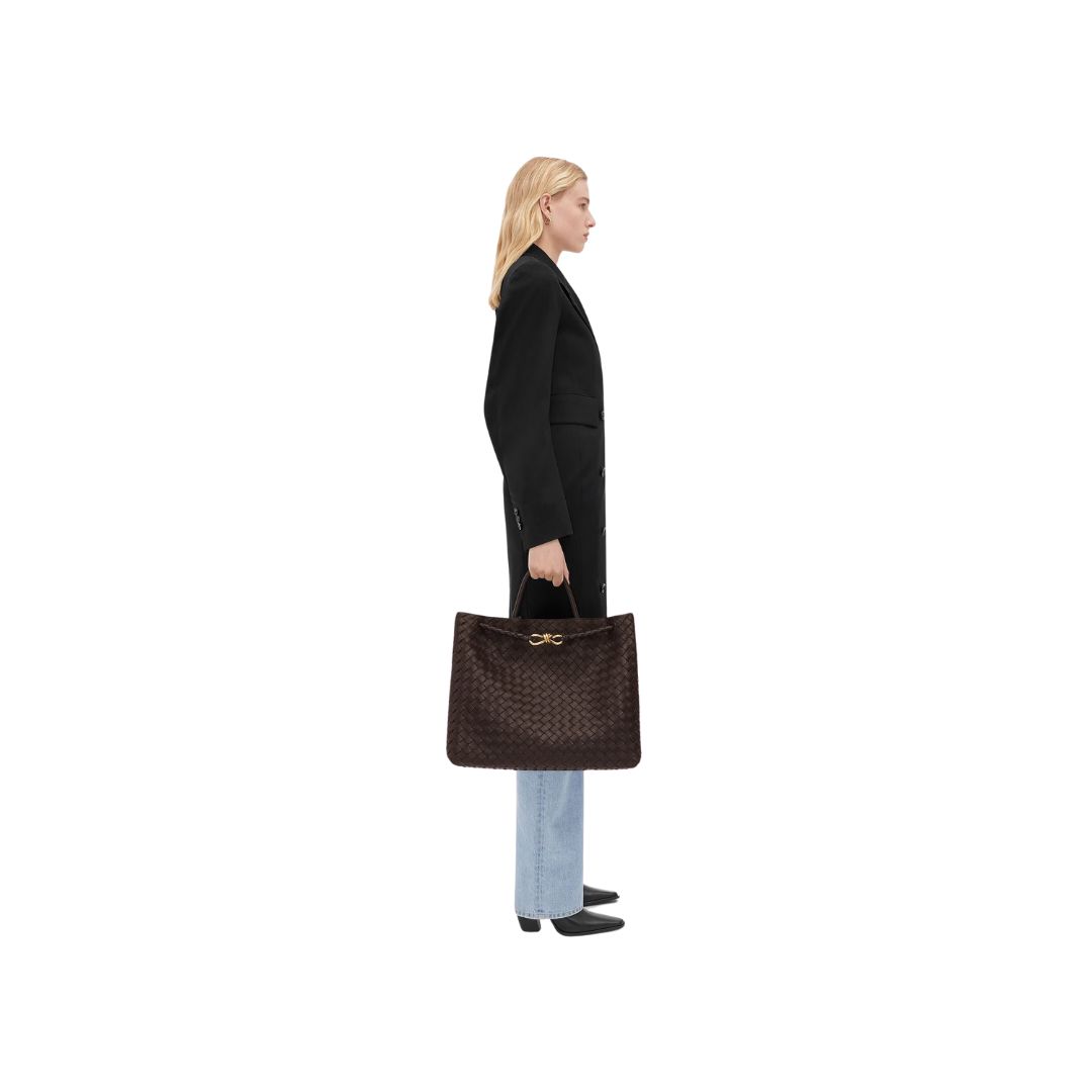 Borsa Bottega Veneta Top Handle in pelle Intrecciato fondente 35 cm