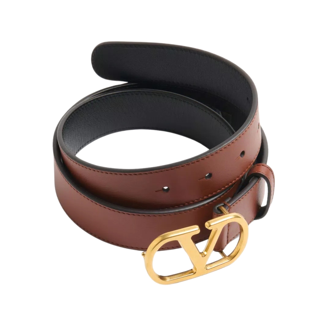 Dettagli:● Materiale: Pelle di vitello lucida● Colore: Caramello scuro● Chiusura: Fibbia con perno● Logo: VLogo Signature● Larghezza cintura: 3 cm●