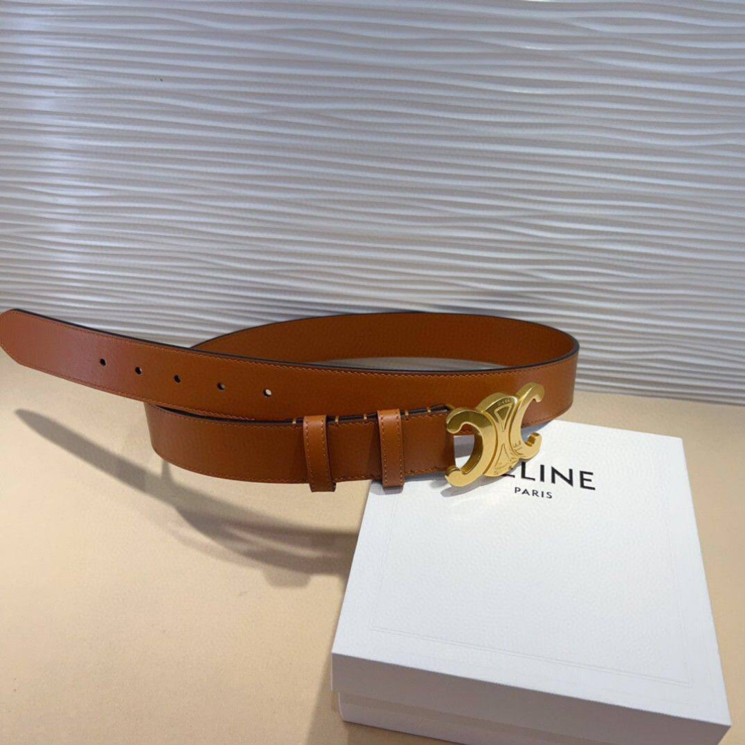 Cintura Celine Triomphe in pelle marrone 2,5 cm