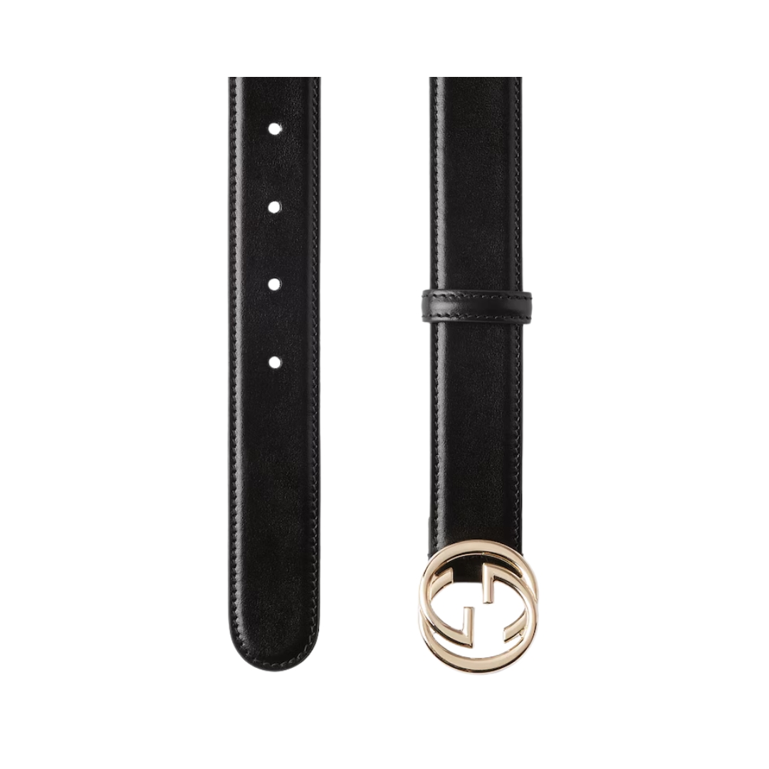 Dettagli:● Materiale: Pelle liscia● Colore: Nero● Chiusura: Fibbia GG● Logo: GG dorato● Altezza cintura: 2 cm● Parti metalliche: Dorate