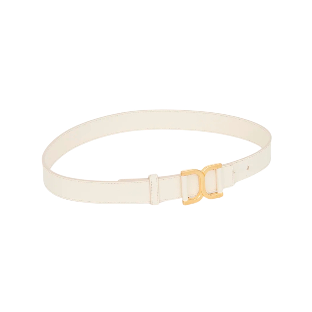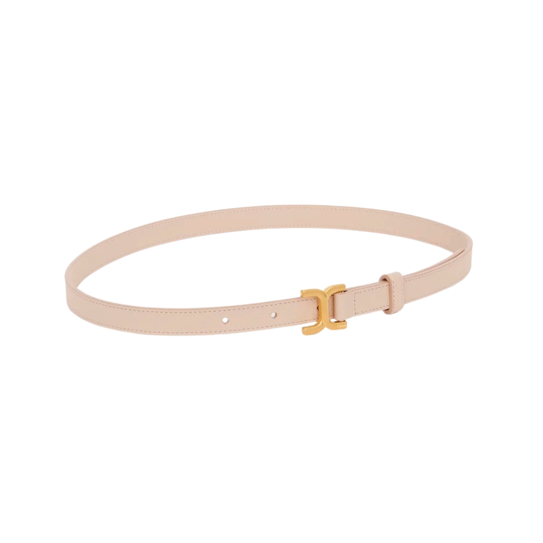 Dettagli:● Materiale: Pelle liscia● Colore: Beige latte● Chiusura: Fibbia C regolabile● Logo: Inciso sulla fibbia● Parti metalliche: Dorate● Larghezza: 3