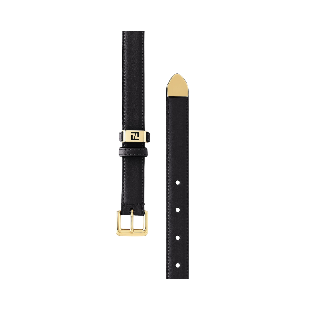 Cintura Fendi in pelle nera con logo inciso 2 cm