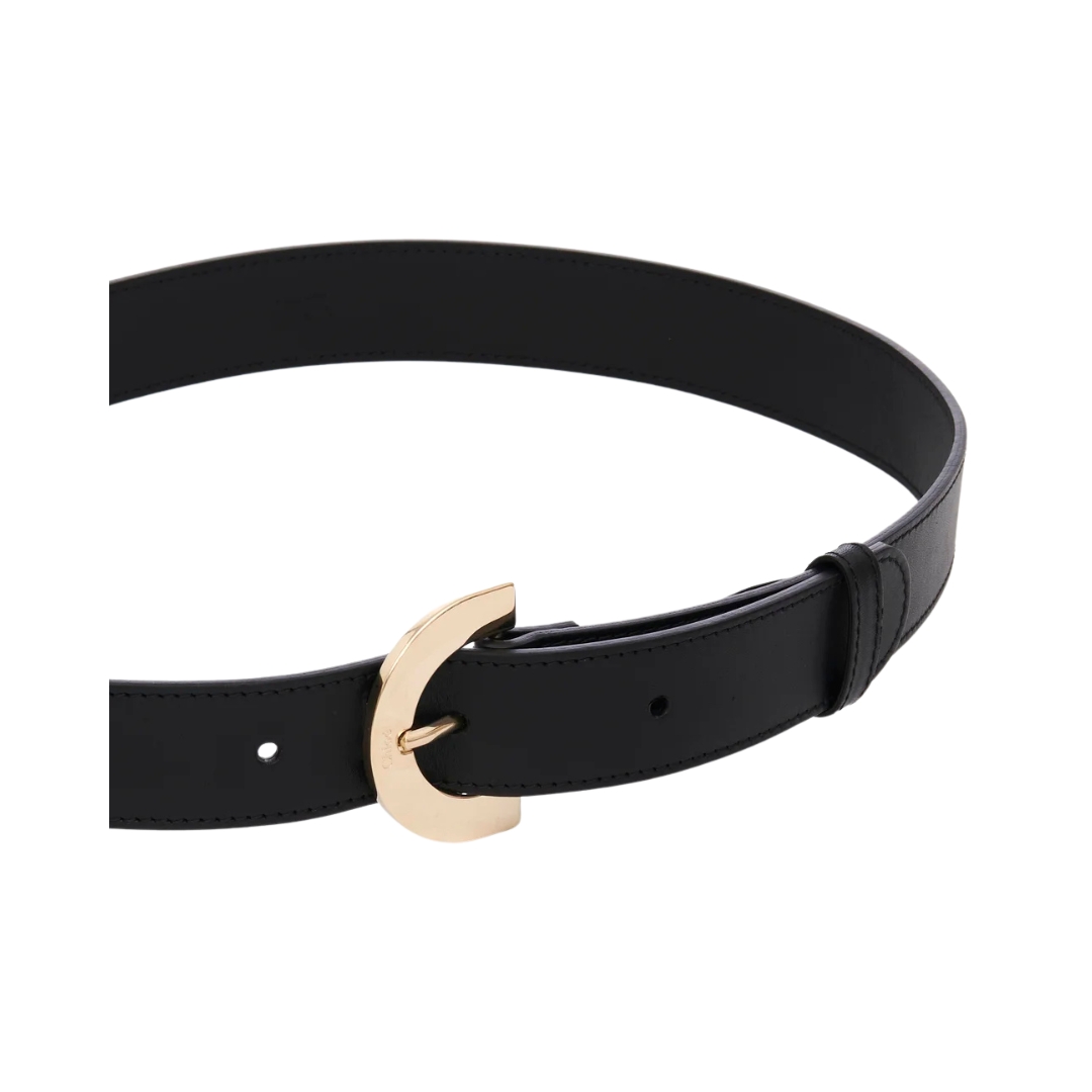Dettagli:● Materiale: Pelle liscia● Colore: Nero● Chiusura: Fibbia ovale dorata con logo C● Logo: In metallo sulla fibbia● Parti metalliche: