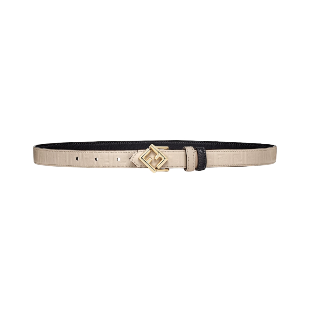 Dettagli:● Materiale: Pelle liscia● Colore: Nero e beige● Chiusura: Fibbia logata● Logo: FF su entrambe le facce● Reversibile: Sì● Parti