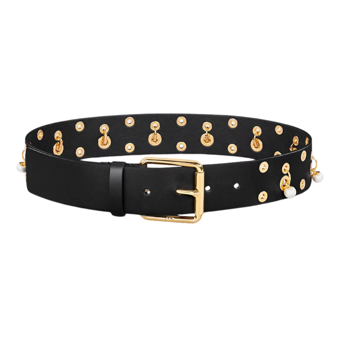 Cintura Dior 30 Montaigne in pelle nera con perle 1,5 cm