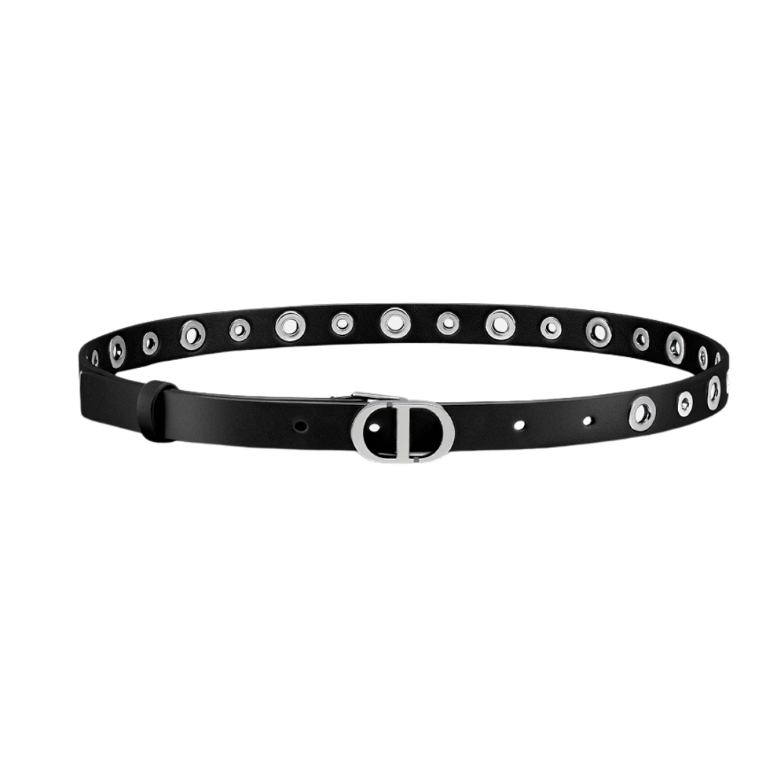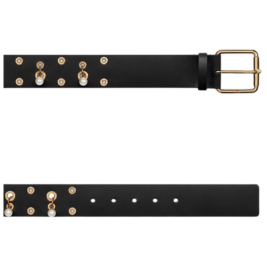Dimensioni:● Larghezza: 1,5 cm Dettagli:● Materiale: Pelle di vitello liscia● Colore: Nero● Chiusura: Fibbia decorata con perle● Logo: Fibbia “CD”●