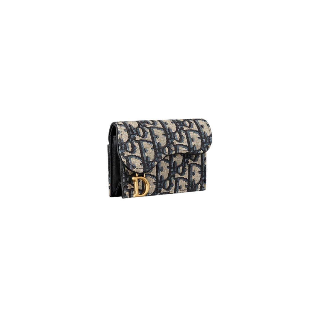 Portacarte Dior Saddle Jasmine in tessuto Oblique con scomparti plissettati
