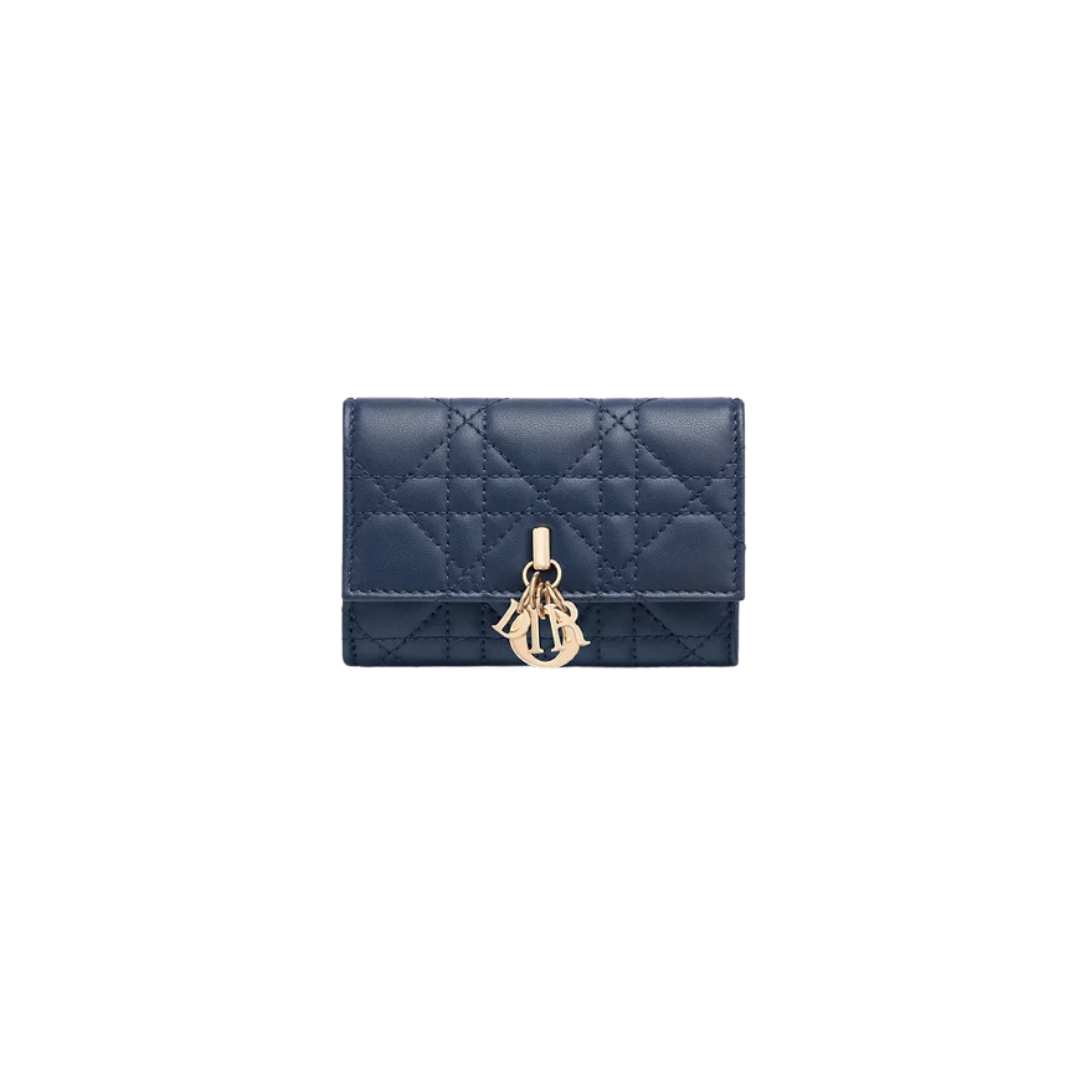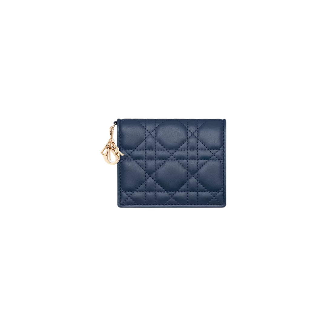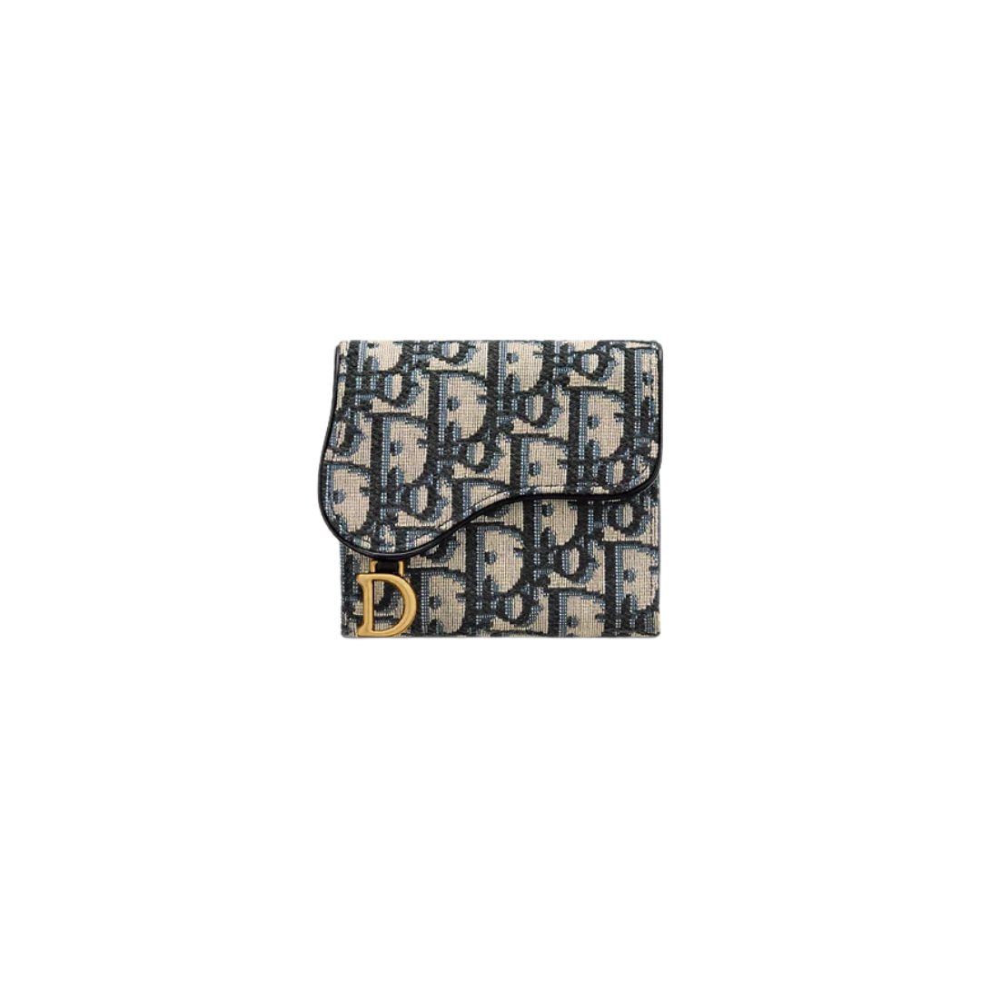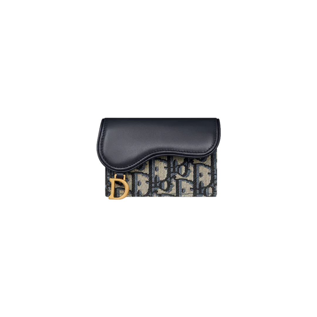 Portafoglio Dior Saddle Lotus in pelle blu navy