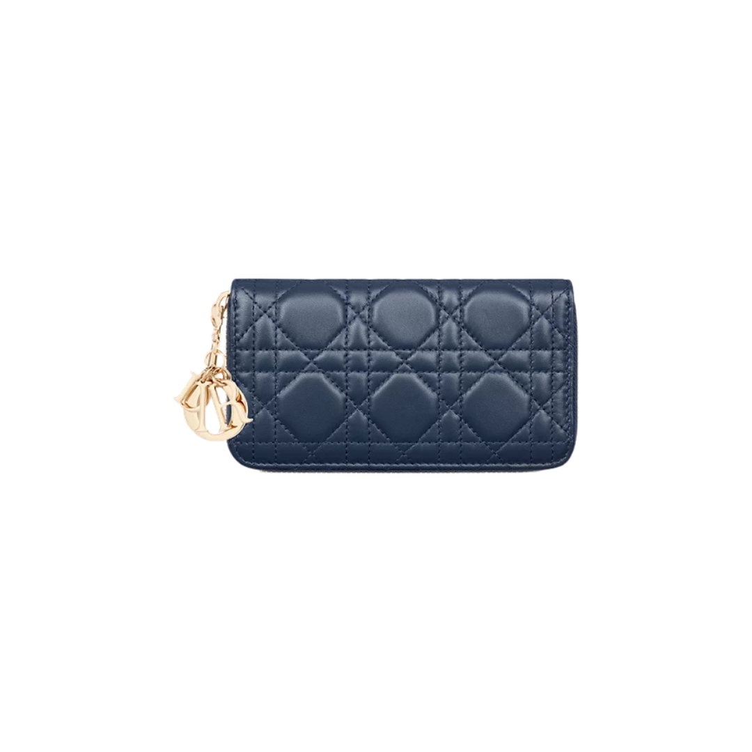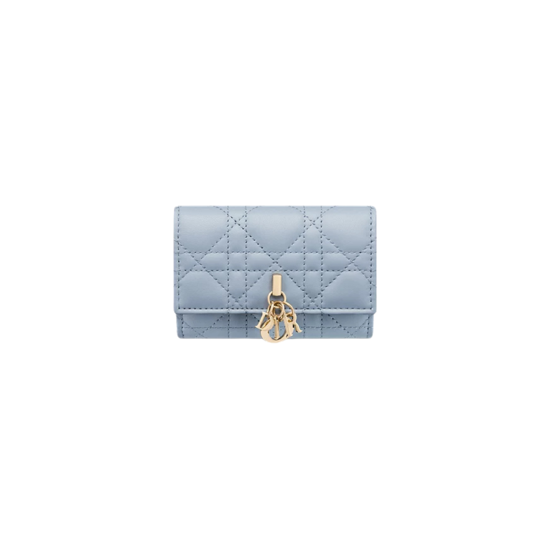 Portacarte Dior in agnello blu oceano motivo Cannage