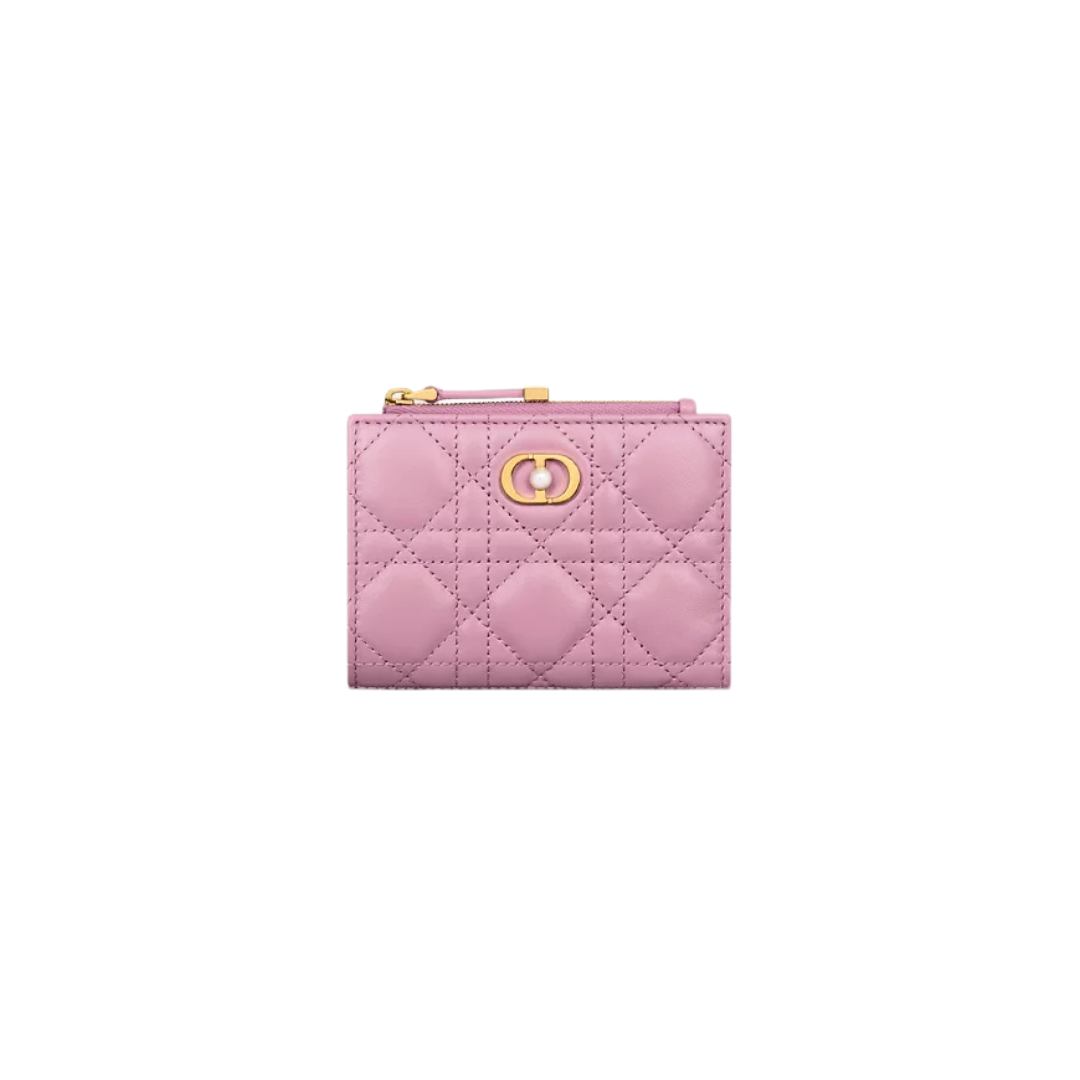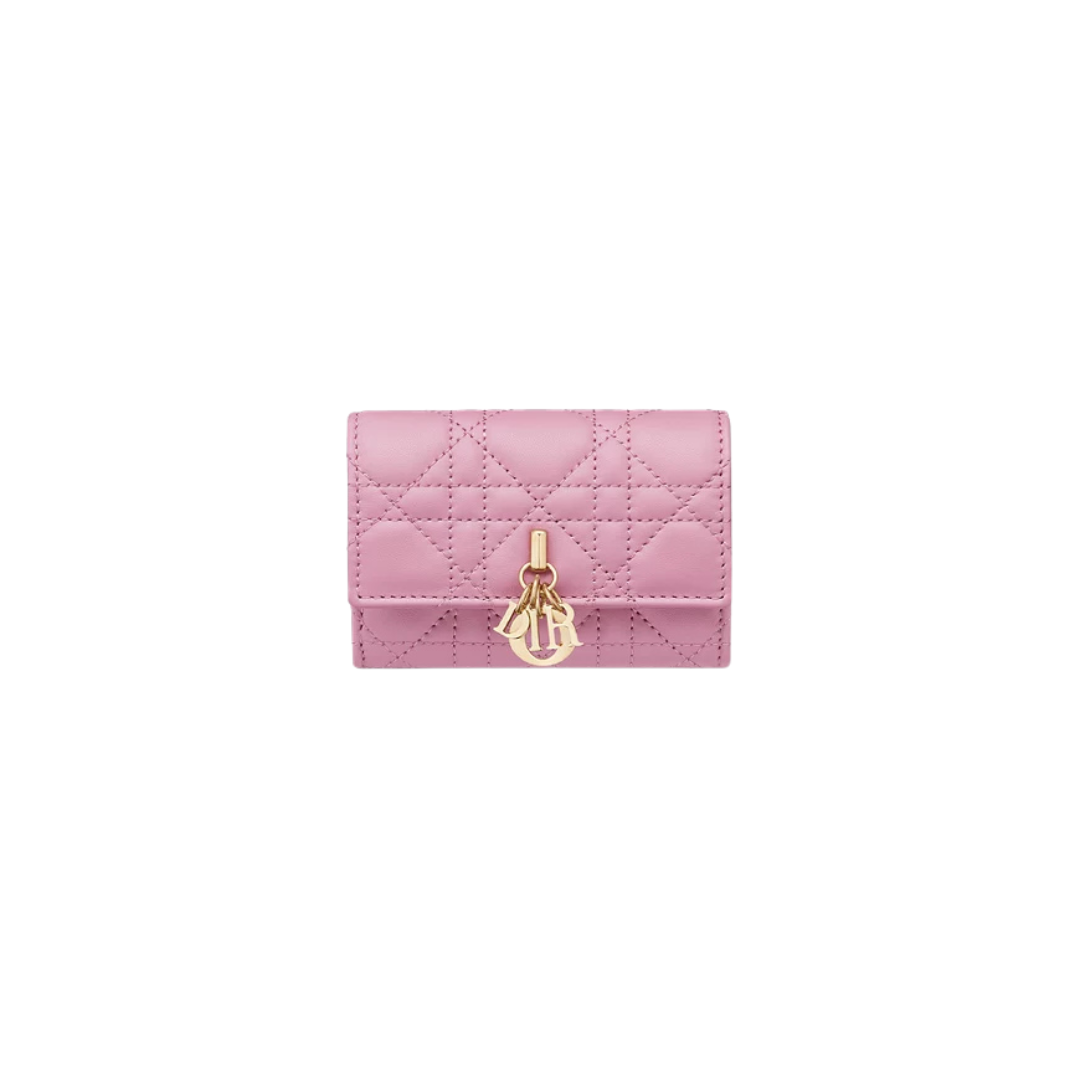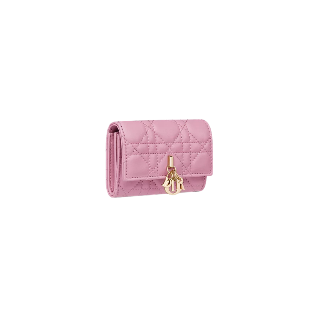 Dettagli:● Materiale: Pelle di agnello● Colore: Beige Dahlia● Chiusura: Bottone a pressione● Logo: “CD” dorato● Interno: Slot per carte e