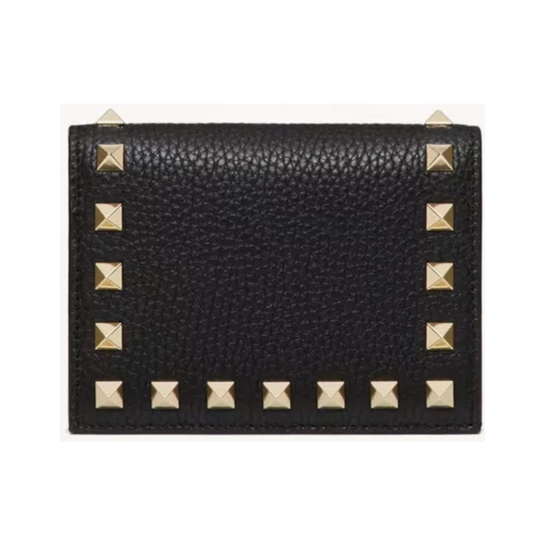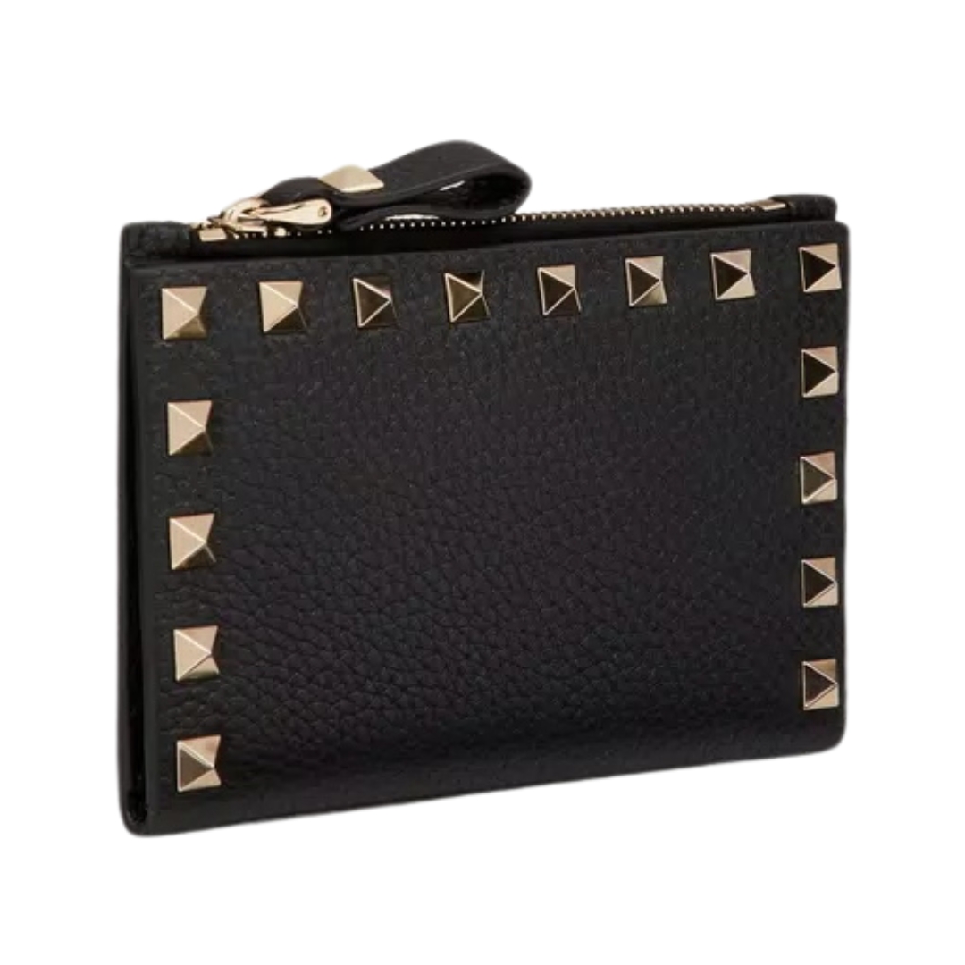 Portafoglio piccolo Valentino Rockstud in pelle nera 11,5 cm