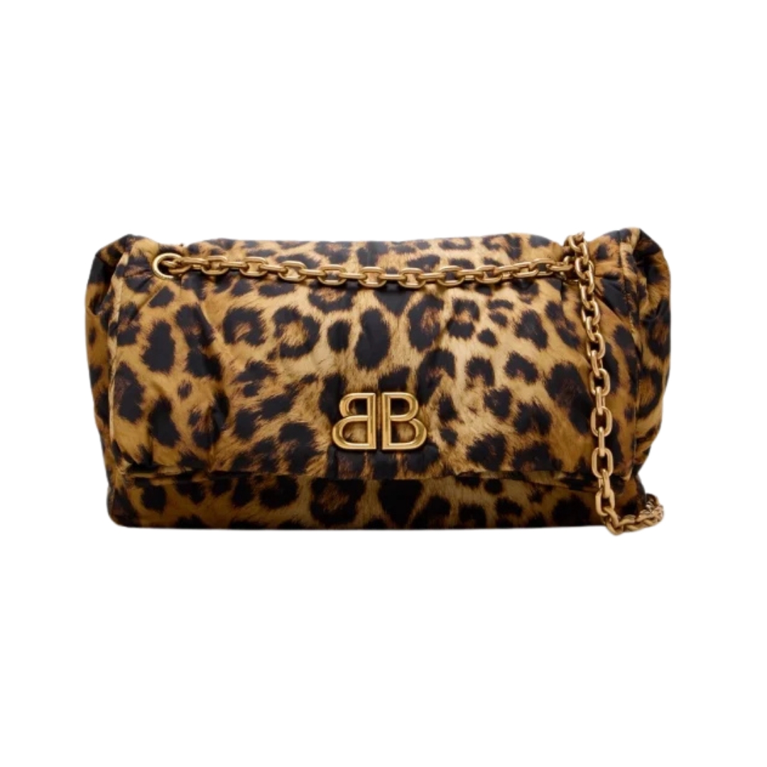 Portafoglio Balenciaga Monaco con catena media in nylon animalier 33 cm