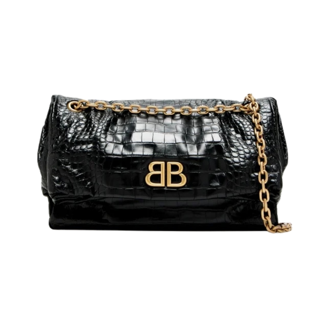 Portafoglio Balenciaga Monaco con catena in pelle di vitello nera 34 cm