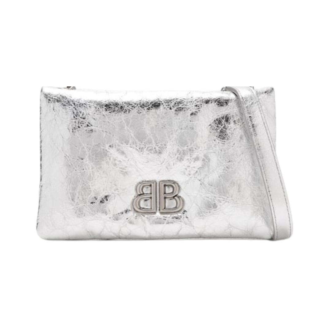 Portafoglio Balenciaga Monaco Nano in pelle metallizzata argento 18 cm