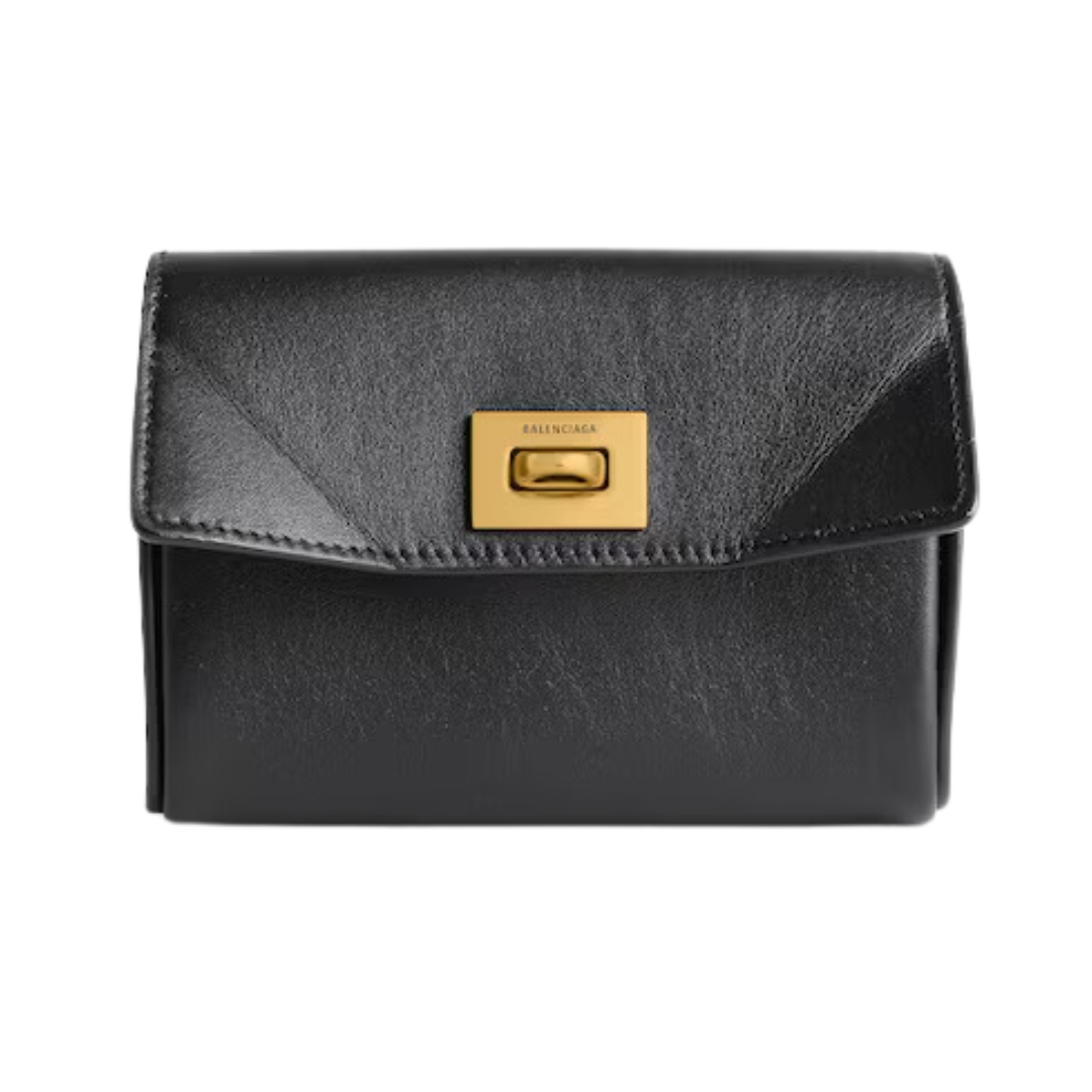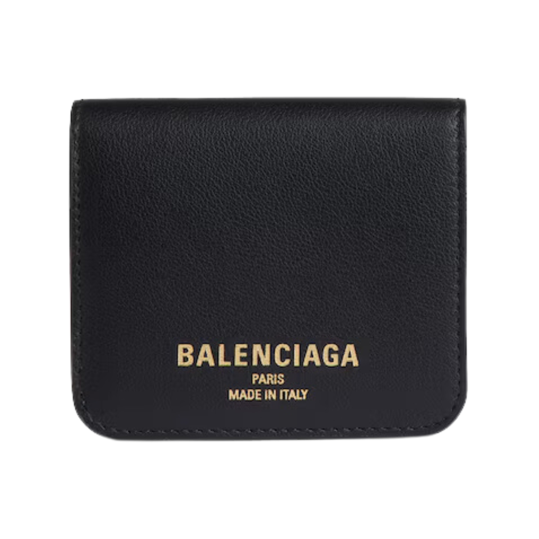 Portamonete e portacarte Balenciaga con patta in pelle nera 10 cm