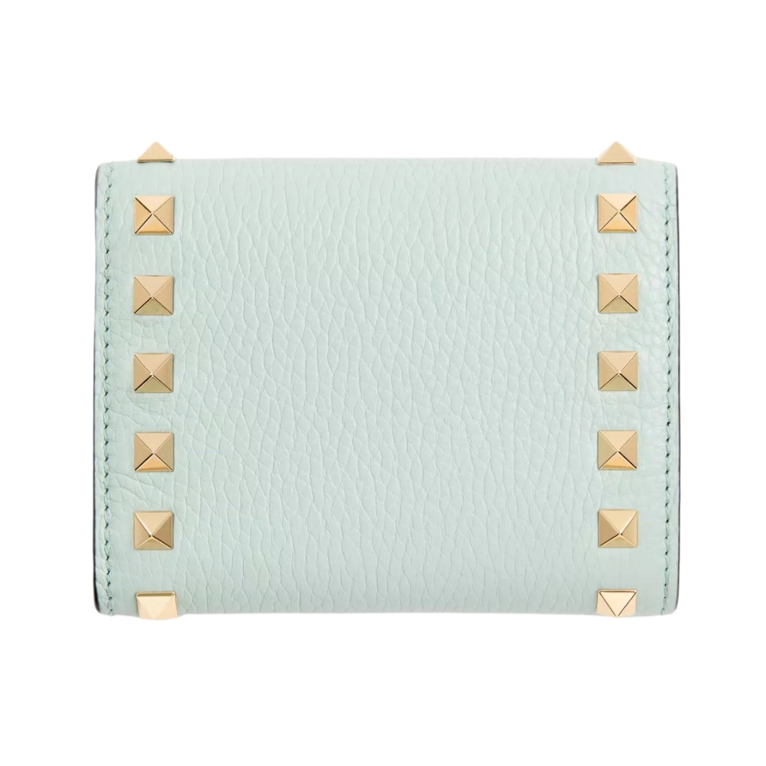 Portafoglio Valentino Rockstud trifold in pelle grigio cielo 11 cm