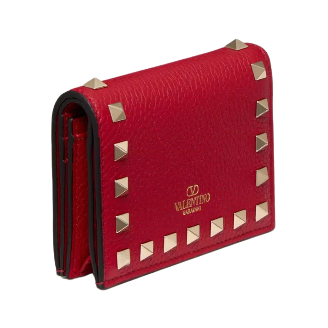 Portafoglio piccolo Valentino Rockstud in pelle rosso Valentino 11,5 cm