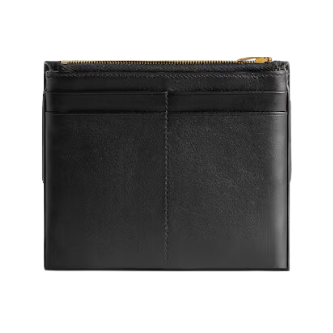 Dimensioni:● Larghezza: 11,5 cm● Altezza: 9 cm● Profondità: 2,5 cm Dettagli:● Materiale: Pelle di vitello● Colore: Nero● Chiusura: Zip su