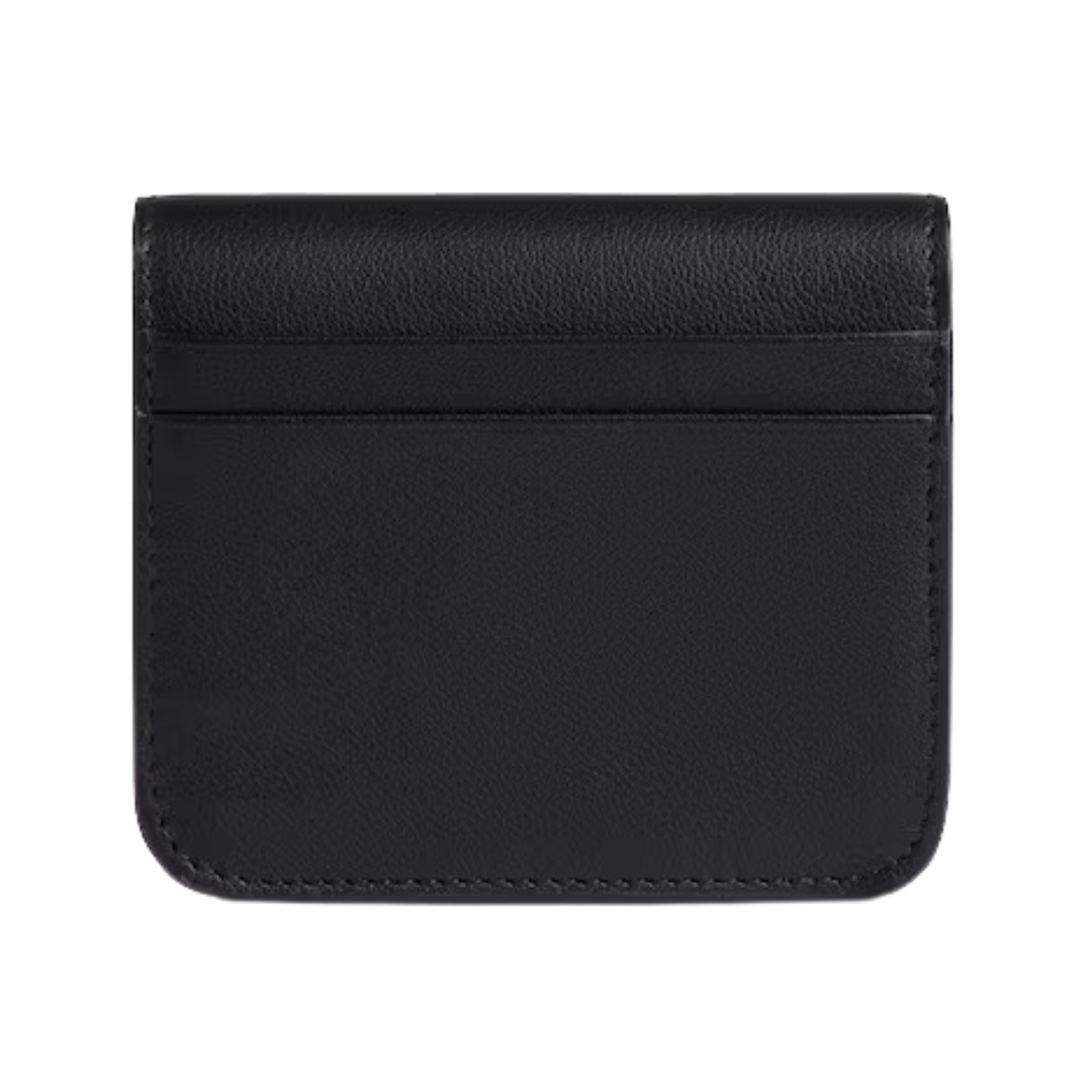 Dimensioni:● Larghezza: 10 cm● Altezza: 7 cm● Profondità: 1,5 cm Dettagli:● Materiale: Pelle liscia● Colore: Nero● Chiusura: Patta con bottone