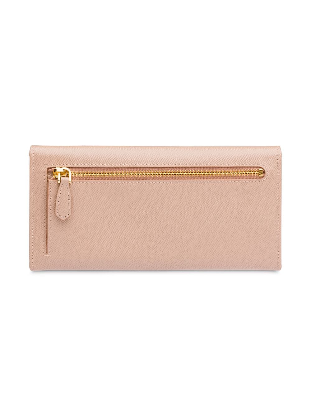Portafoglio con catena Prada in pelle Saffiano rosa 18,7 cm