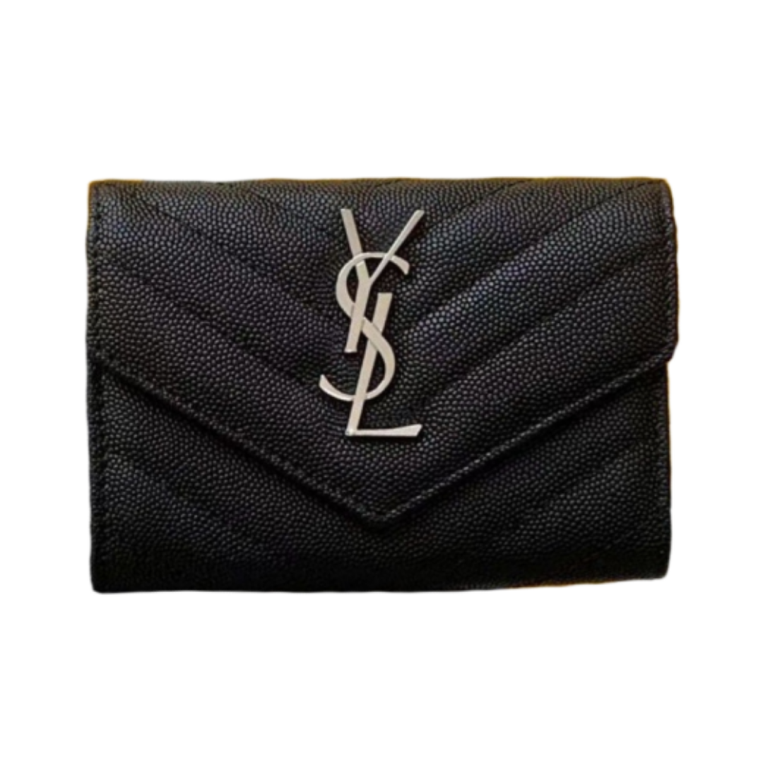 Mini Portafoglio Saint Laurent Cassandre Matelassé in pelle nera 13 cm
