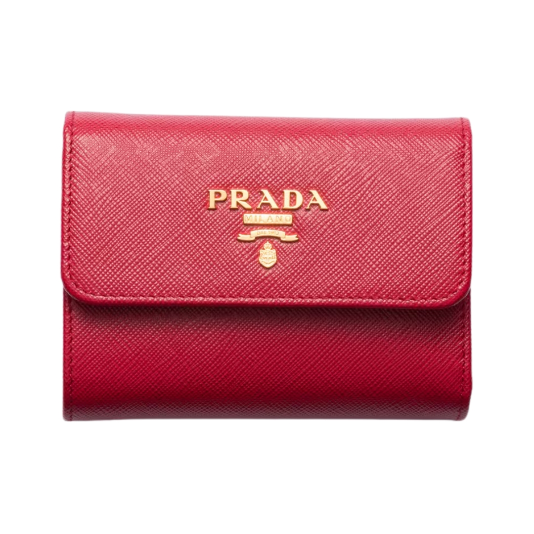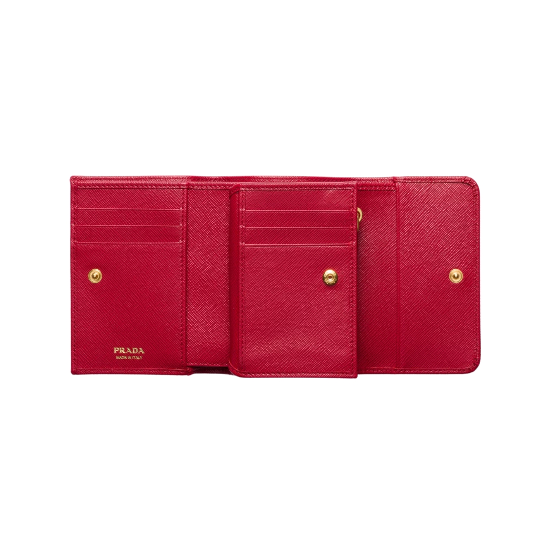 Portafoglio compatto Prada in pelle Saffiano rosso 9.5 cm
