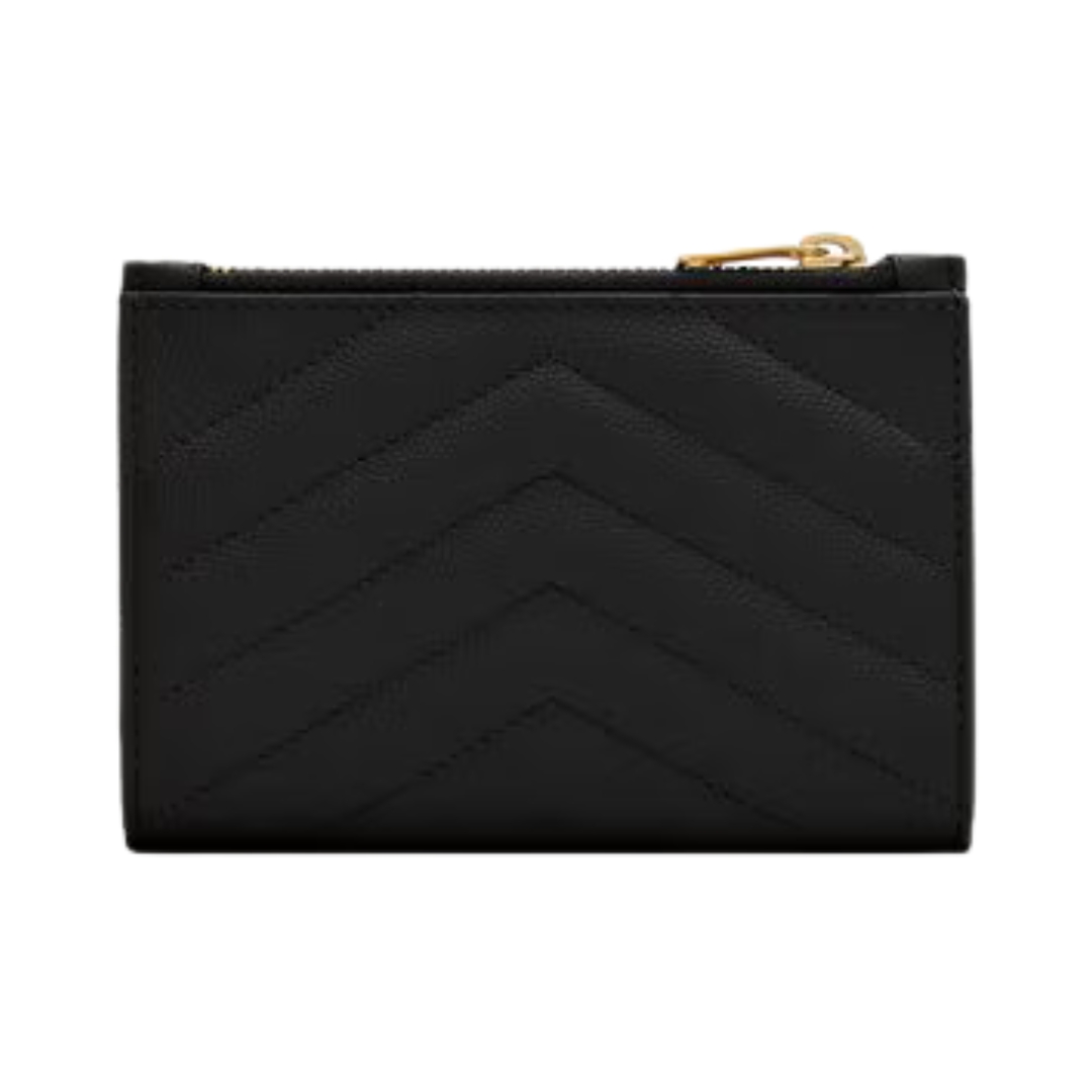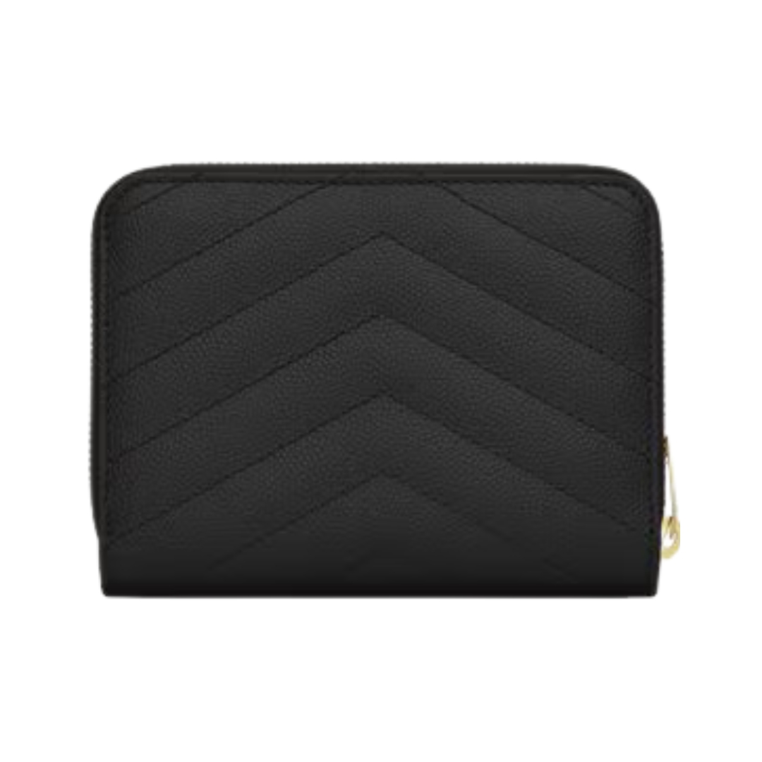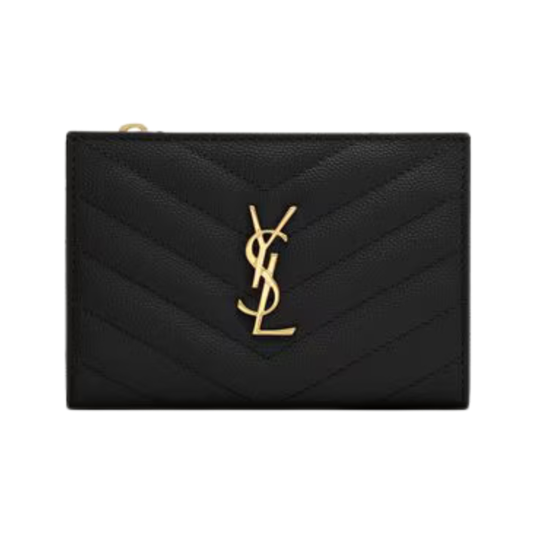 Dettagli:● Materiale: Pelle grain de poudre● Colore: Nero● Chiusura: Zip perimetrale● Logo: Monogram YSL dorato● Interno: Slot per carte e