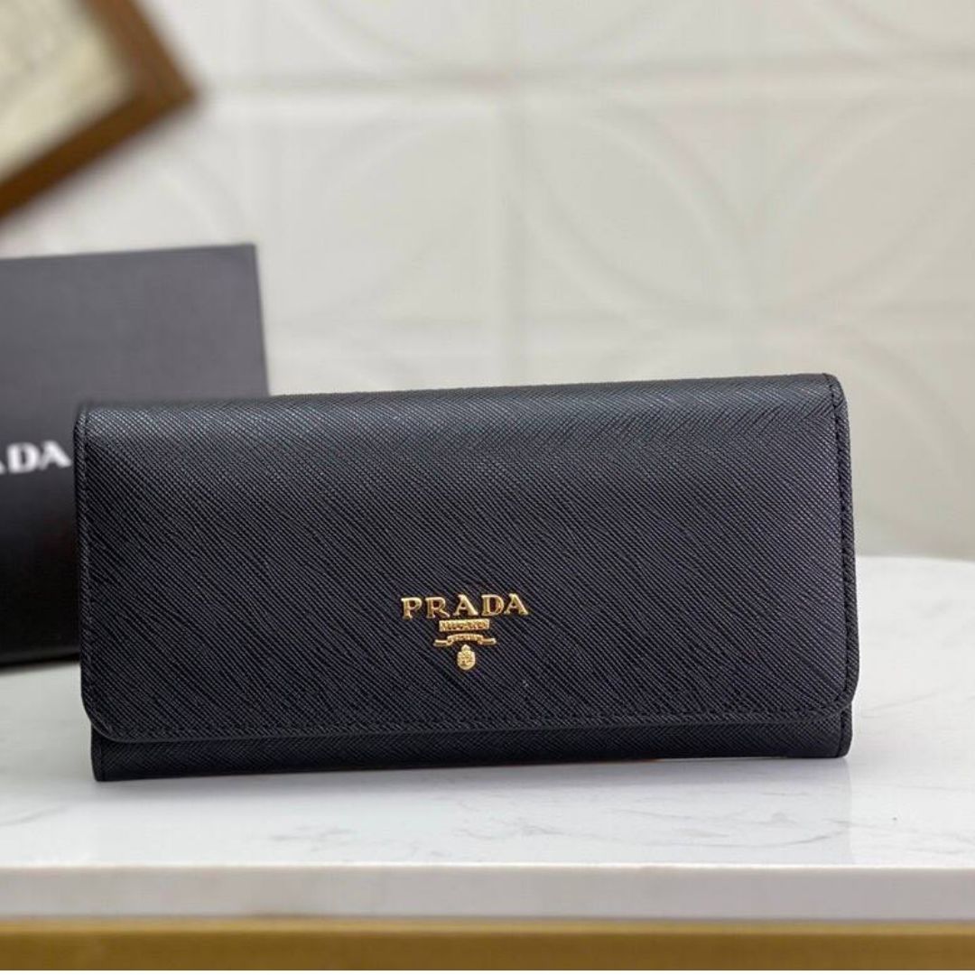 Portafoglio Prada in pelle Saffiano nera 18,7 cm