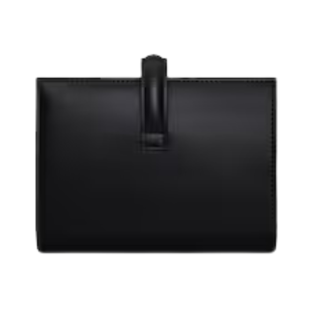 Dimensioni:● Larghezza: 17 cm● Altezza: 9 cm● Profondità: 1,5 cm Dettagli:● Materiale: Pelle Epsom● Colore: Nero● Chiusura: Patta con linguetta