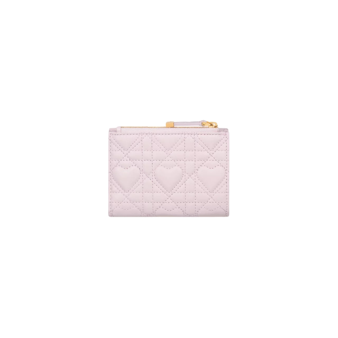 Portacarte Dior in agnello rosa chiaro con motivo Cannage e cuori