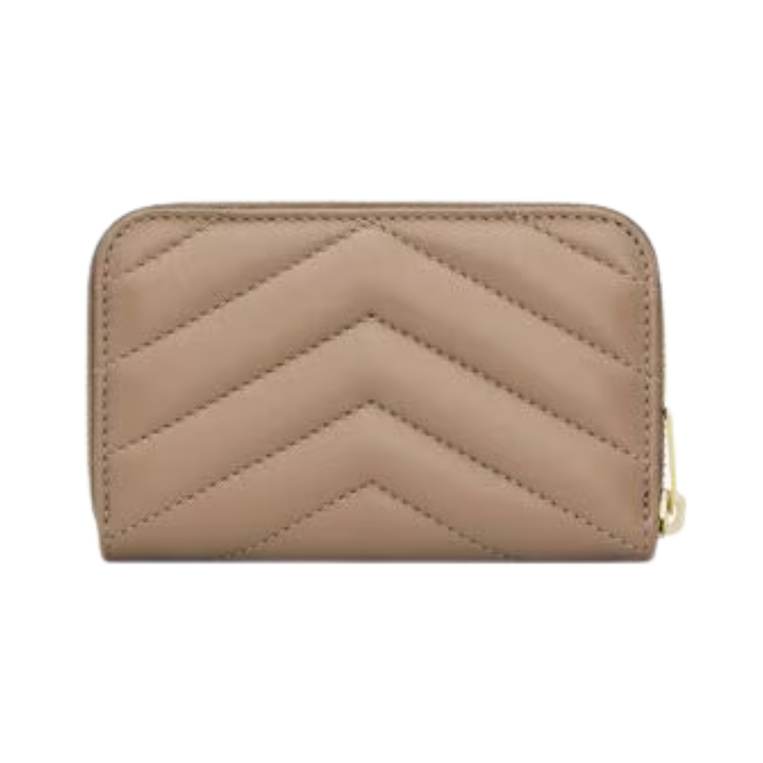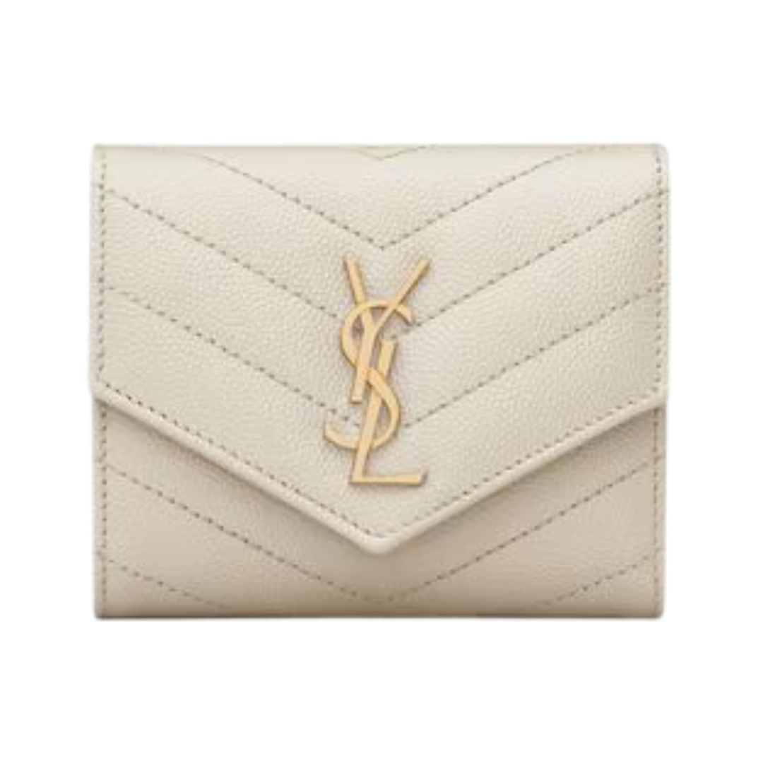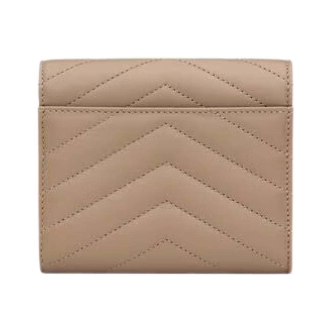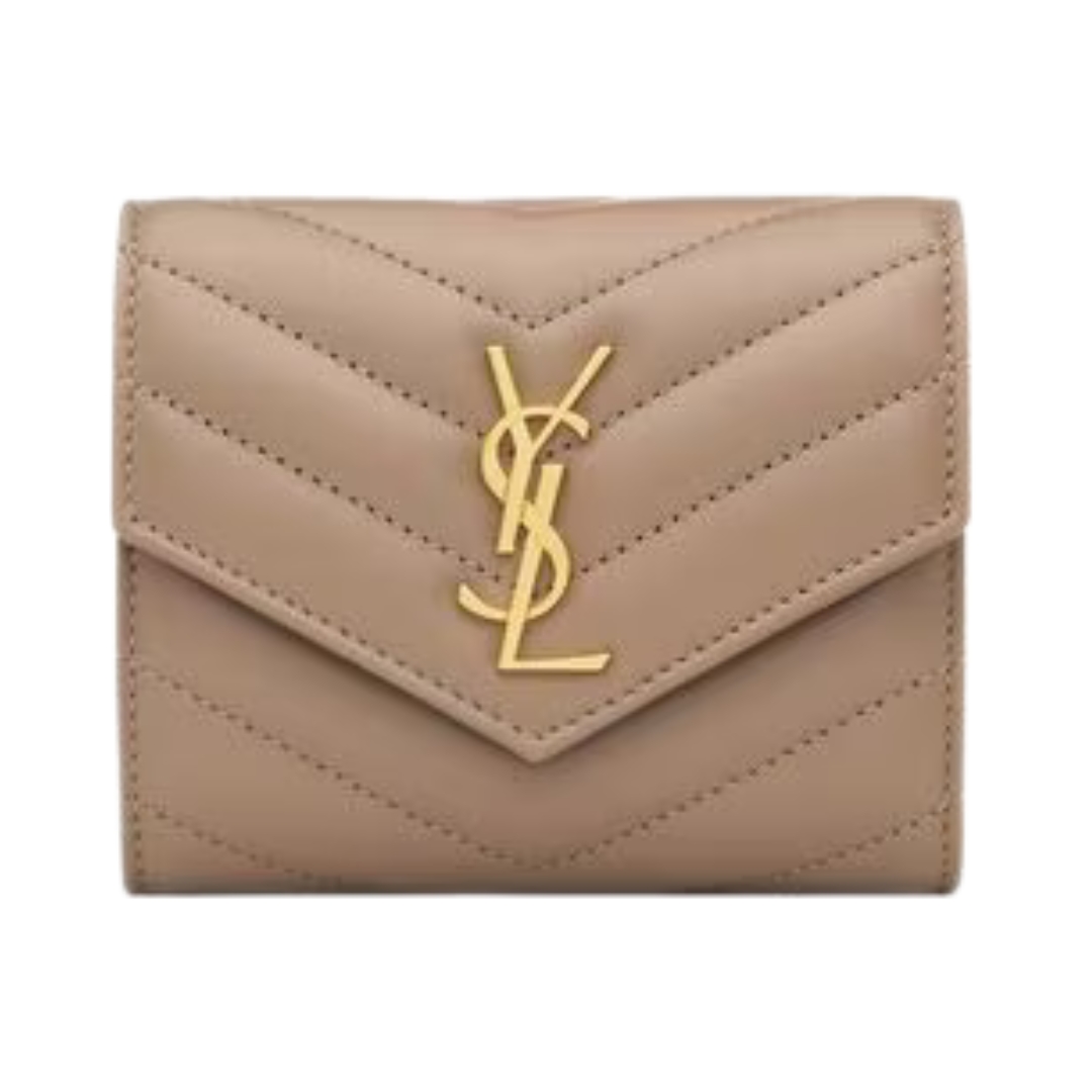 Portafoglio Saint Laurent Cassandre Matelassé Tri-Fold compatto in agnello cipria 12.5 cm