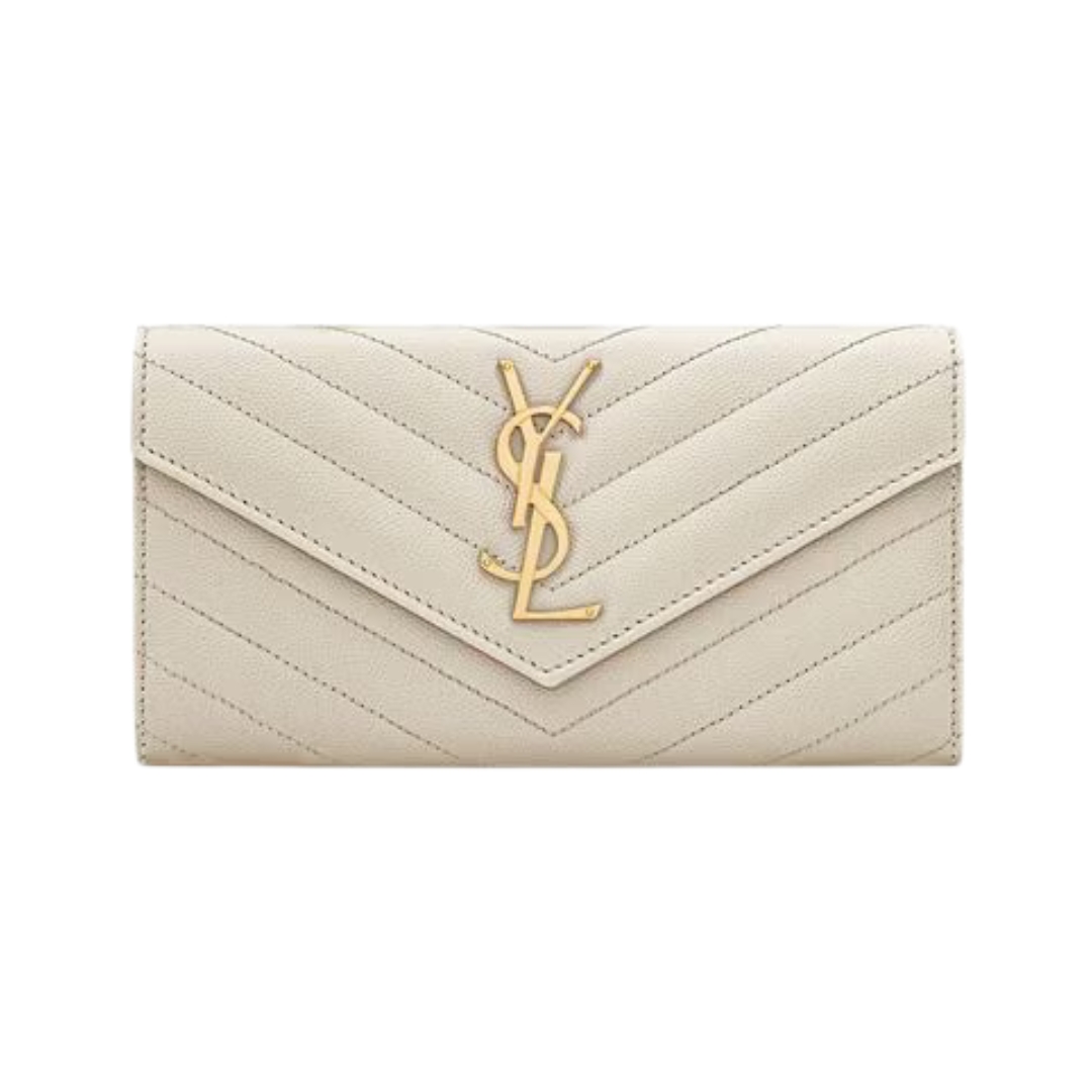 Portafoglio Saint Laurent Cassandre grande con patta in pelle beige 19 cm