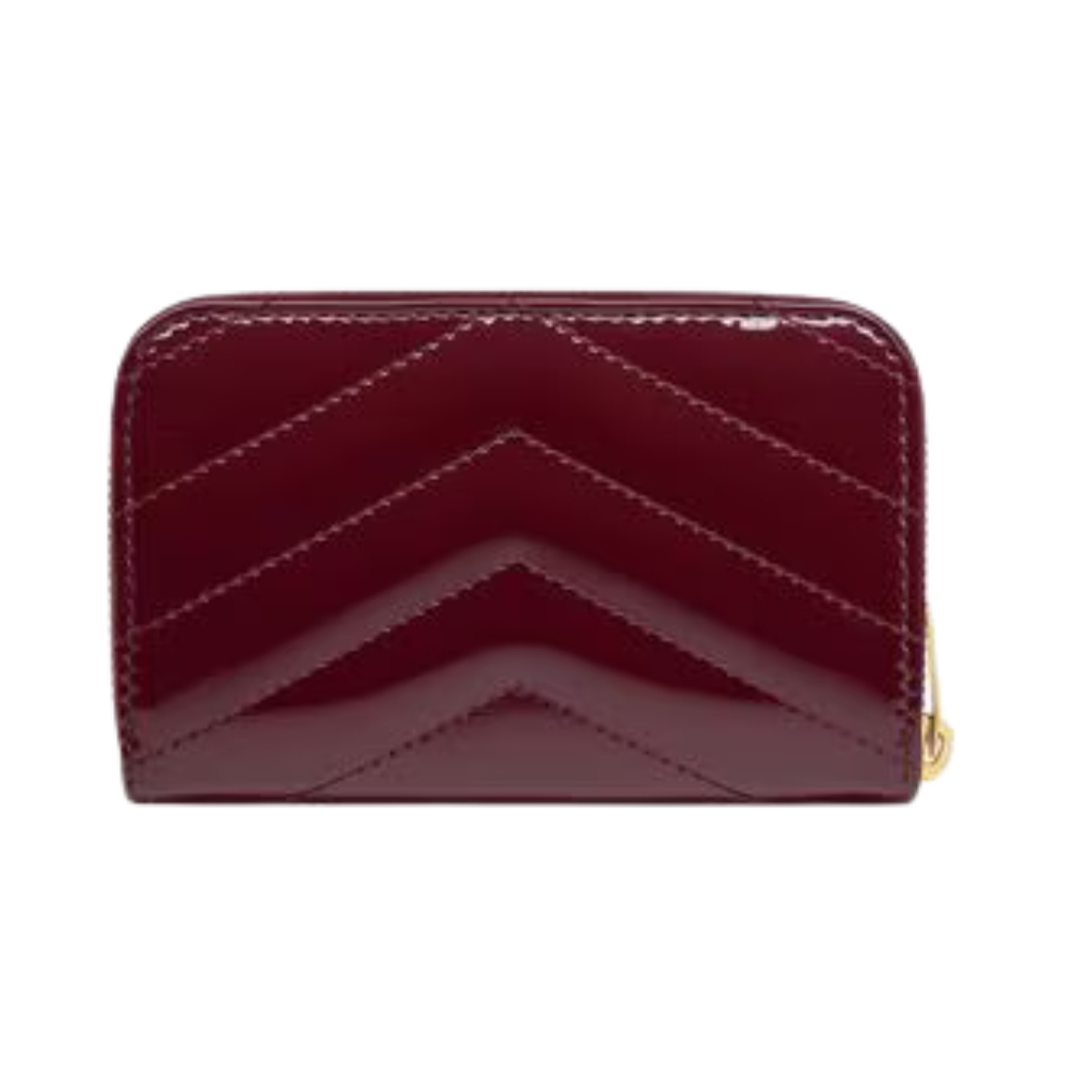 Dimensioni:● Larghezza: 11 cm● Altezza: 8.5 cm● Profondità: 2 cm Dettagli:● Materiale: pelle verniciata● Colore: nero lucido● Chiusura: bottone a