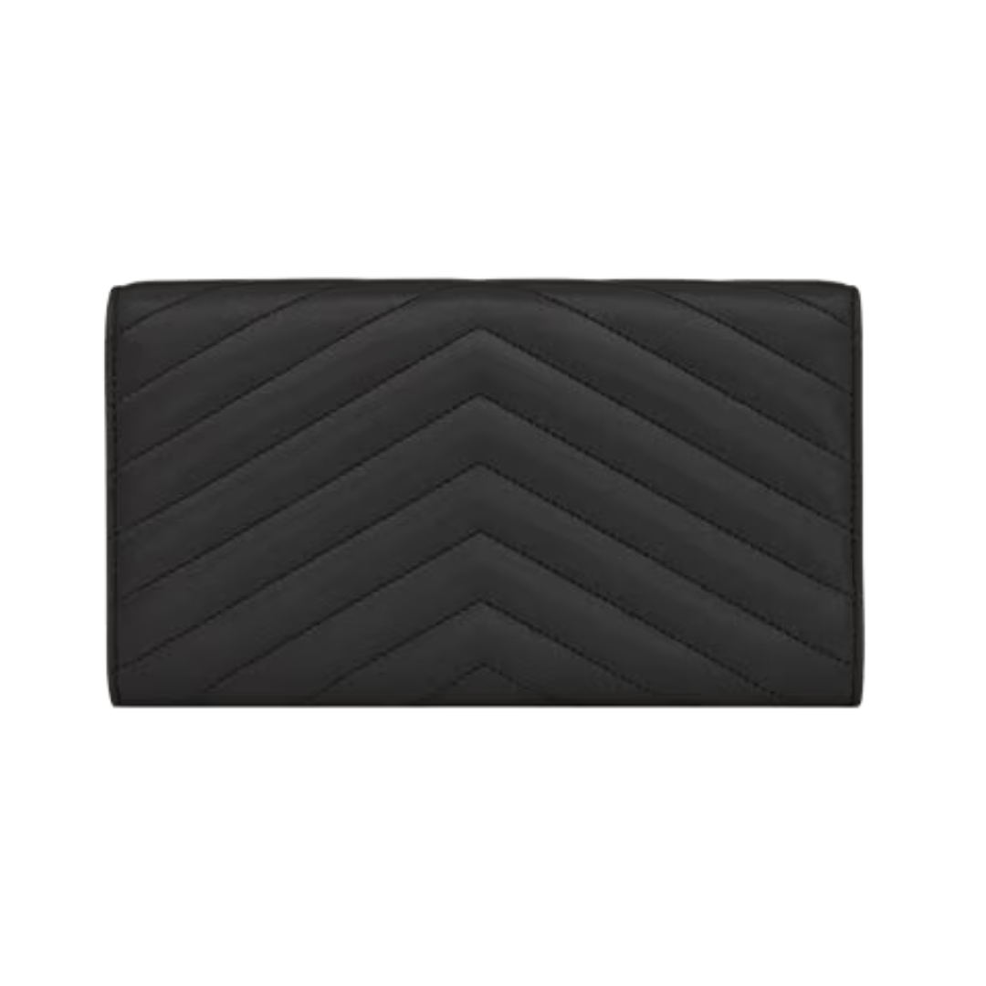 Dettagli:● Materiale: Pelle matelassé● Colore: Nero● Chiusura: Patta con bottone● Logo: YSL dorato● Interno: Slot per carte e banconote● Parti